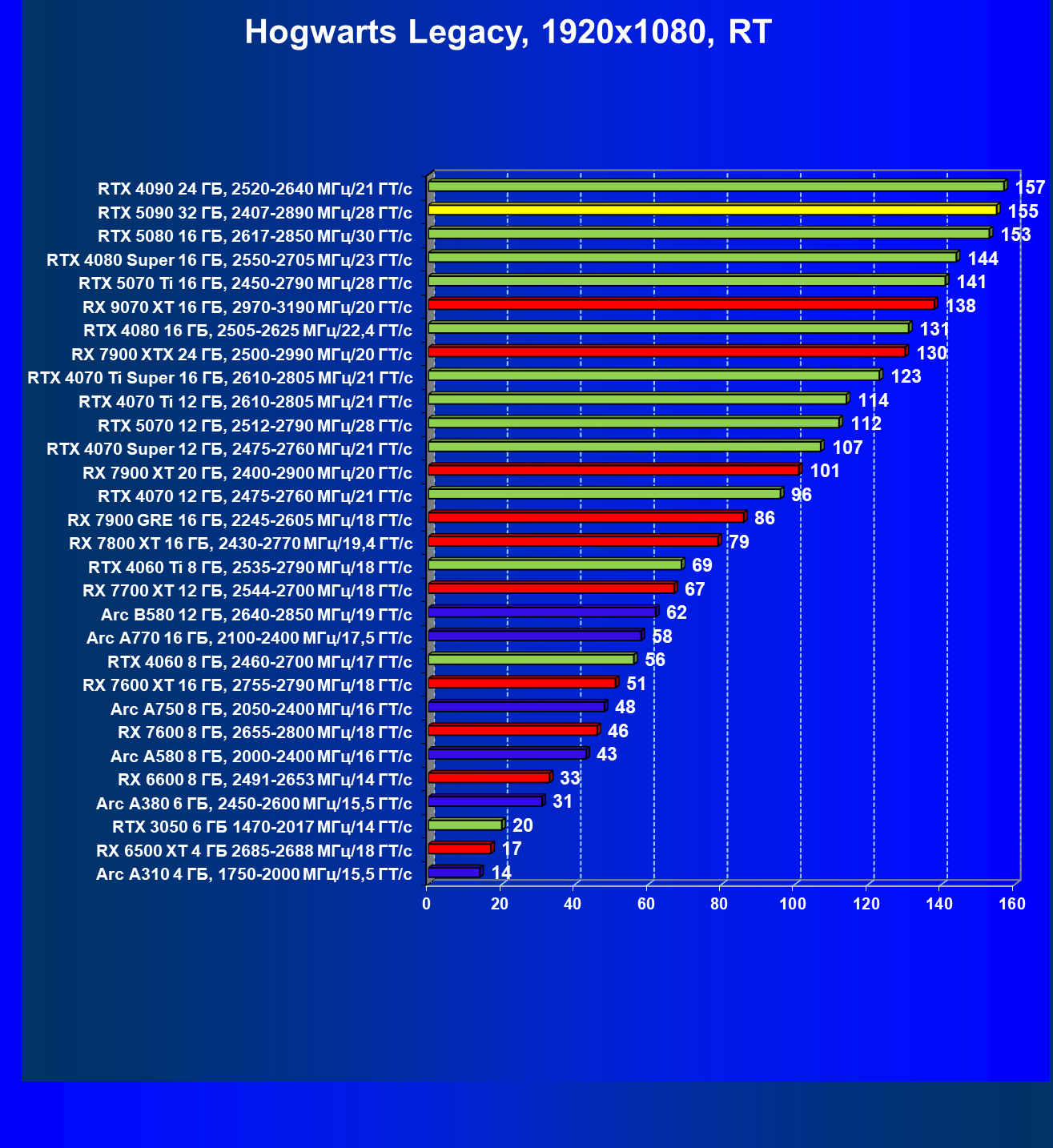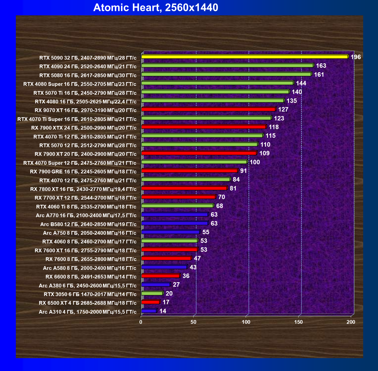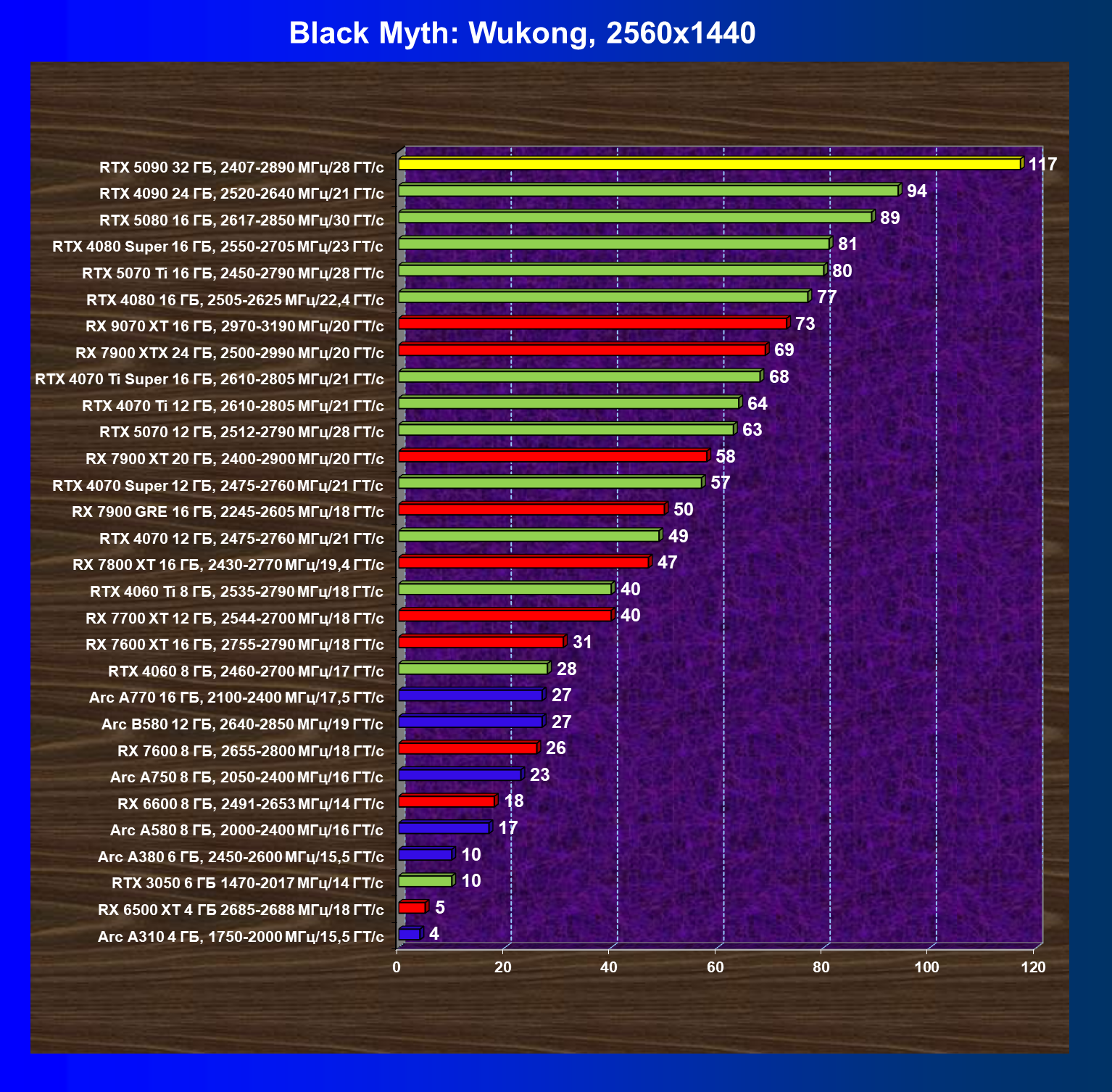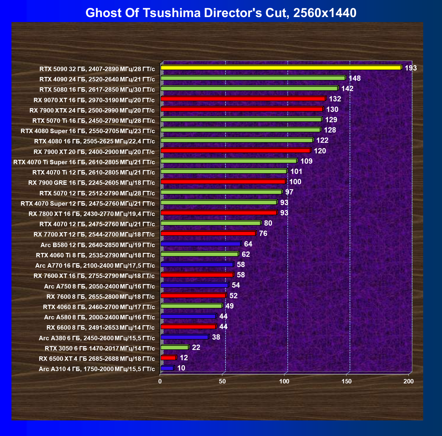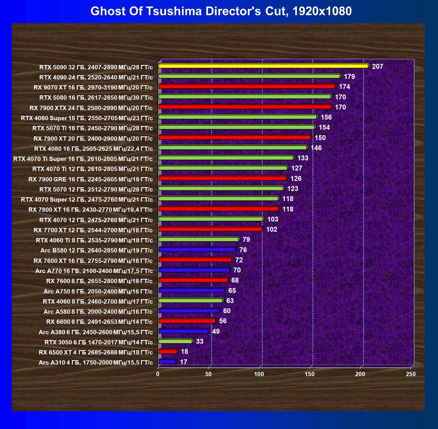| 26 | RTX 5090 32 ГБ, 2407—2890 МГц/28 ГТ/с | 231 | 7516 | 325 000 |