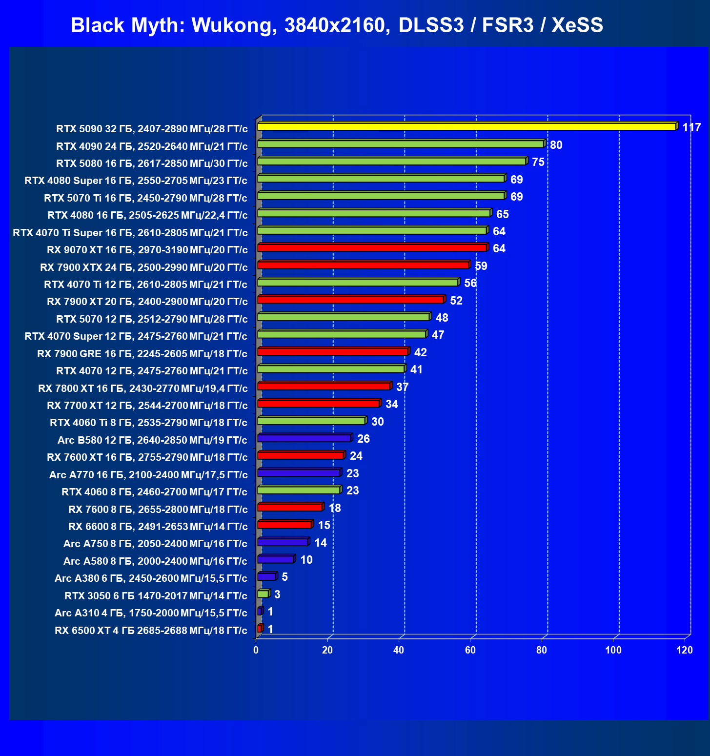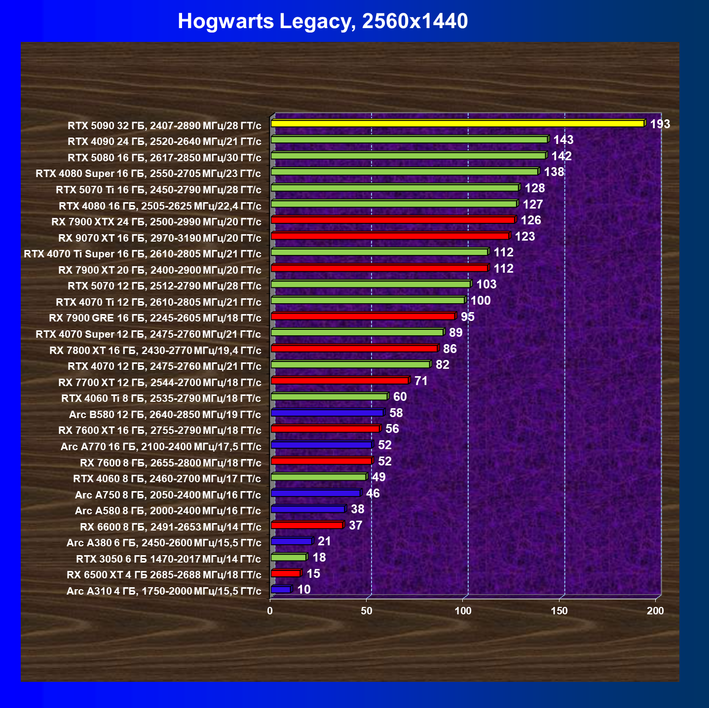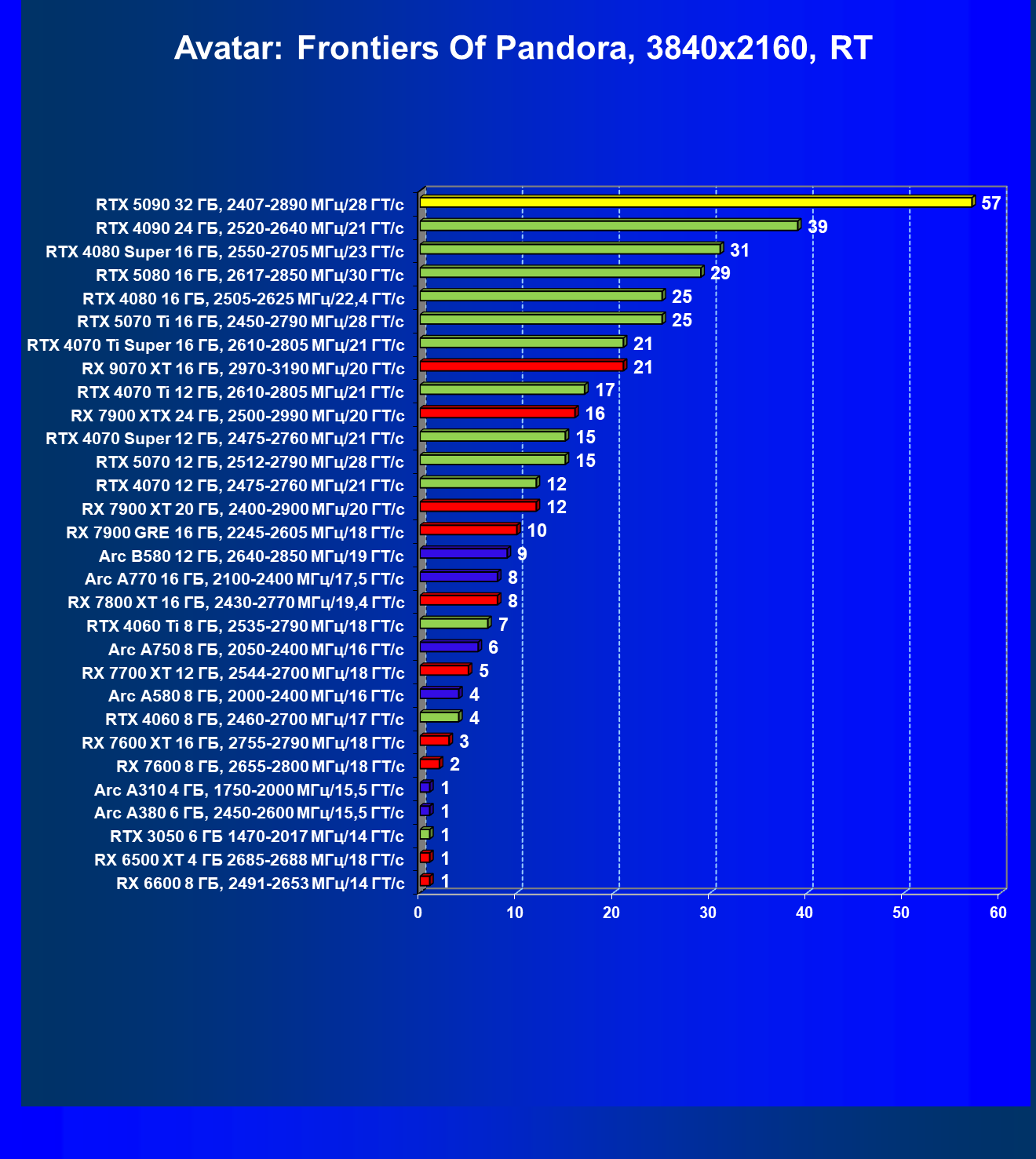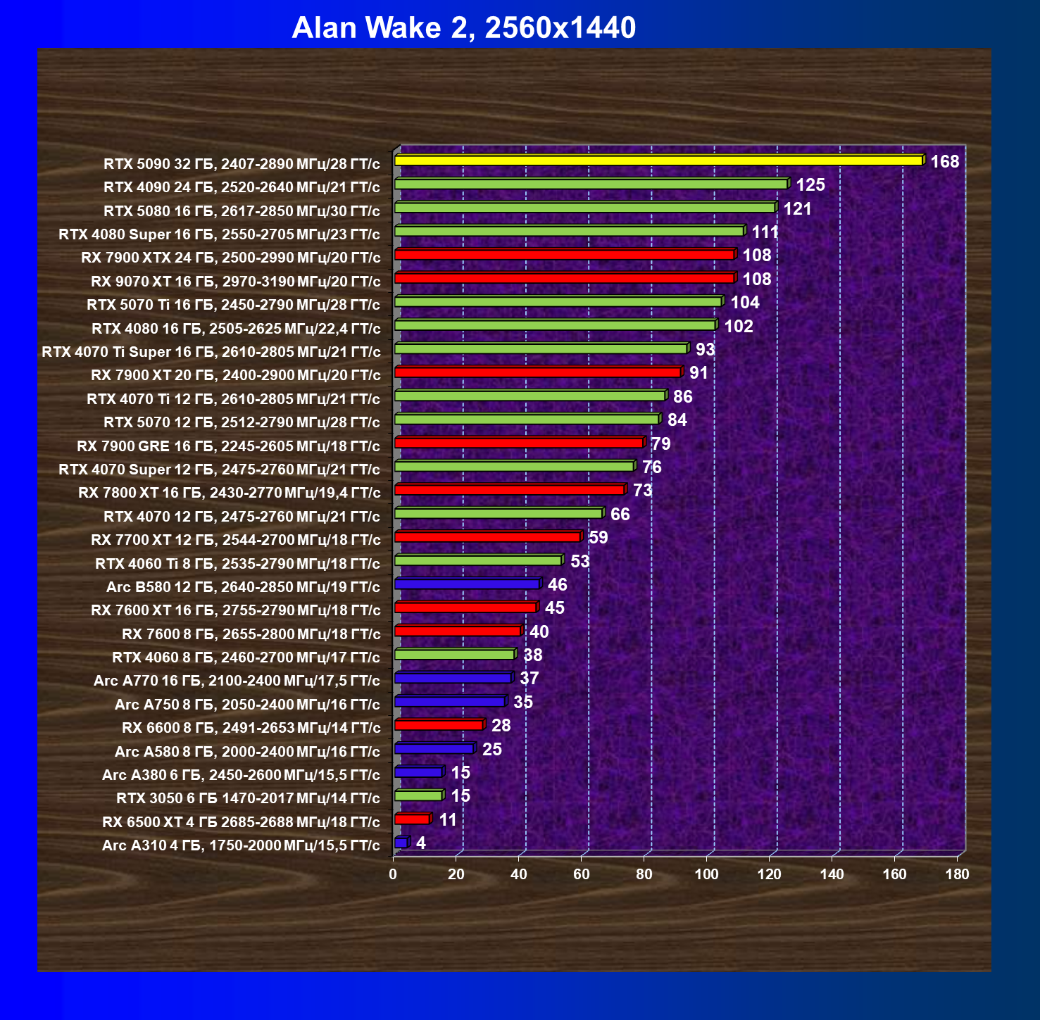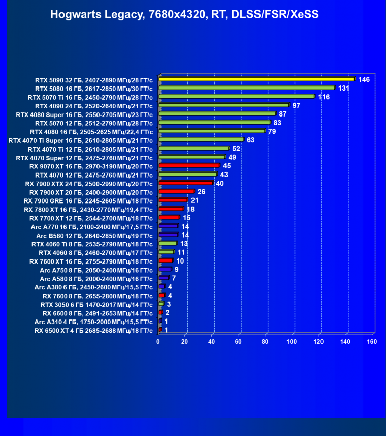 | 25 | RTX 5080 16 ГБ, 2617—2850 МГц/30 ГТ/с | 304 | 4980 | 164 000 |