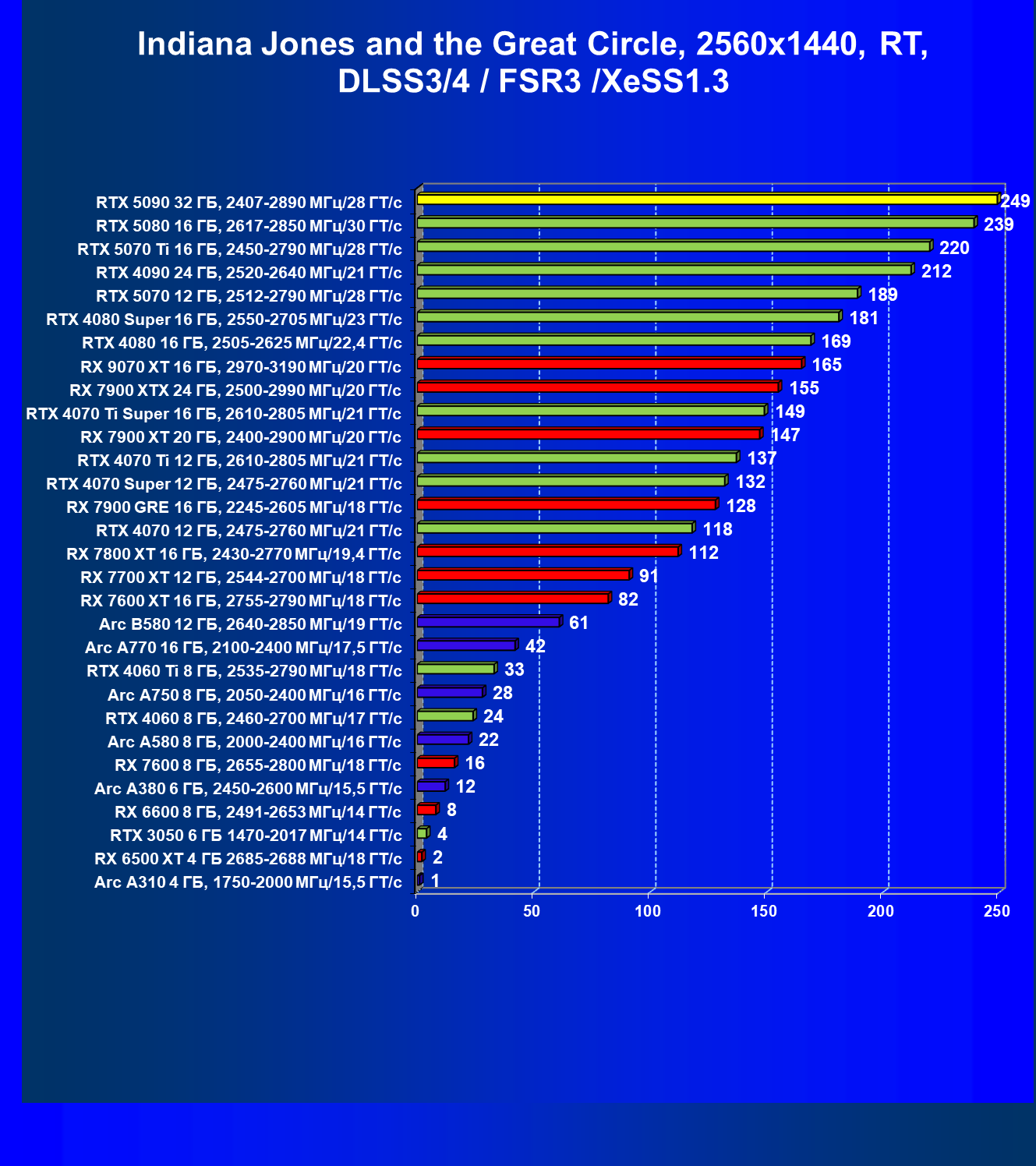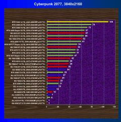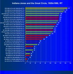 | 21 | RX 7900 XTX 24 ГБ, 2500—2990 МГц/20 ГТ/с | 526 | 6254 | 119 000 |