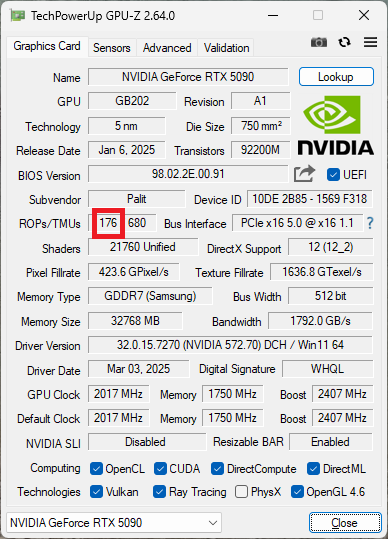 | GeForce RTX 5090 | 282 |