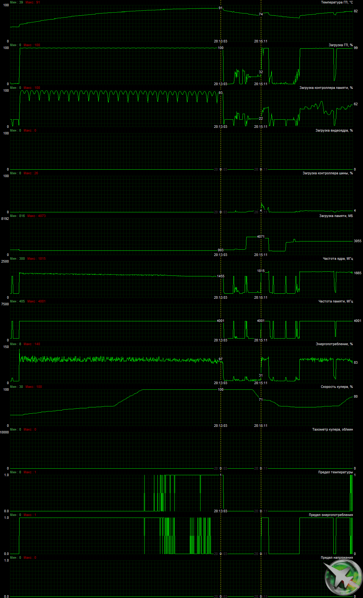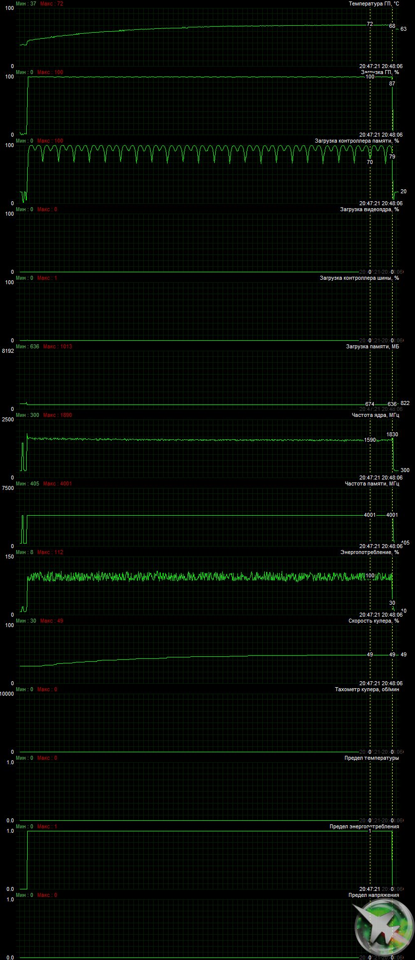 - Прогон с выключенной корпусной вентиляцией: