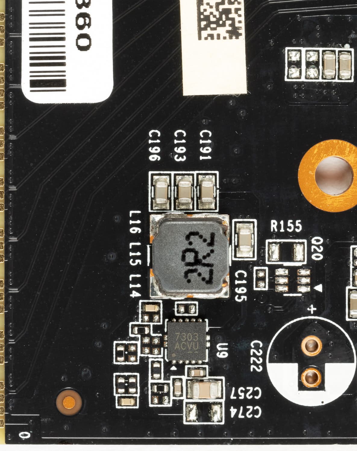 Для управления 1-фазной схемой питания микросхем памяти имеется отдельный контроллер 7303 (определить производителя и детали контроллера не удалось).
