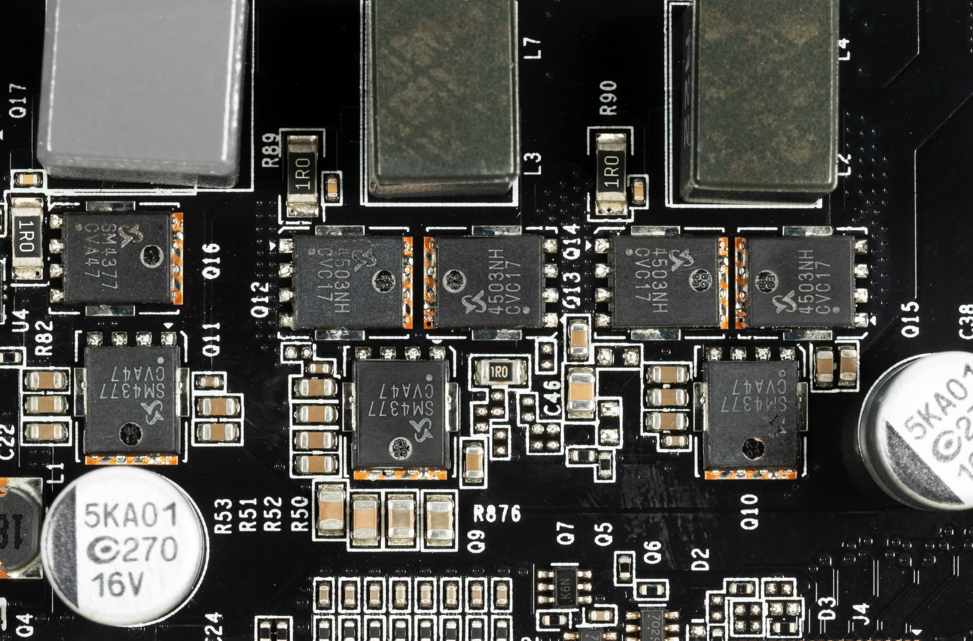 Используются не сборки типа DrMOS, а простые наборы мосфетов компании Sinopower.