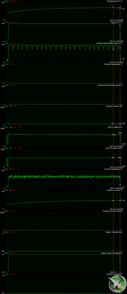 Мониторинг температурного режима с помощью MSI Afterburner (прогон в закрытом корпусе):