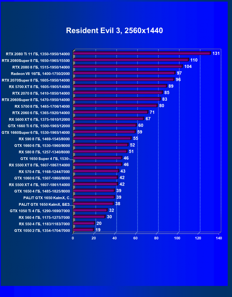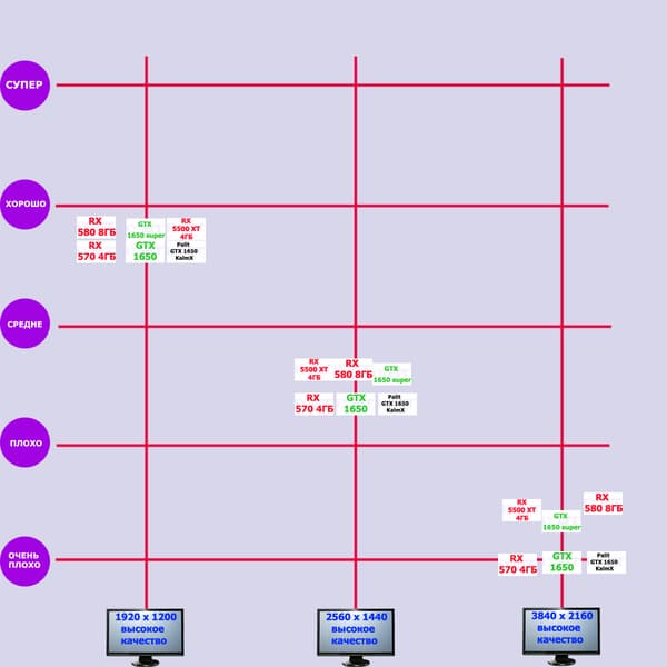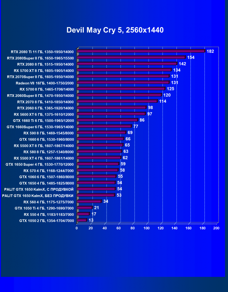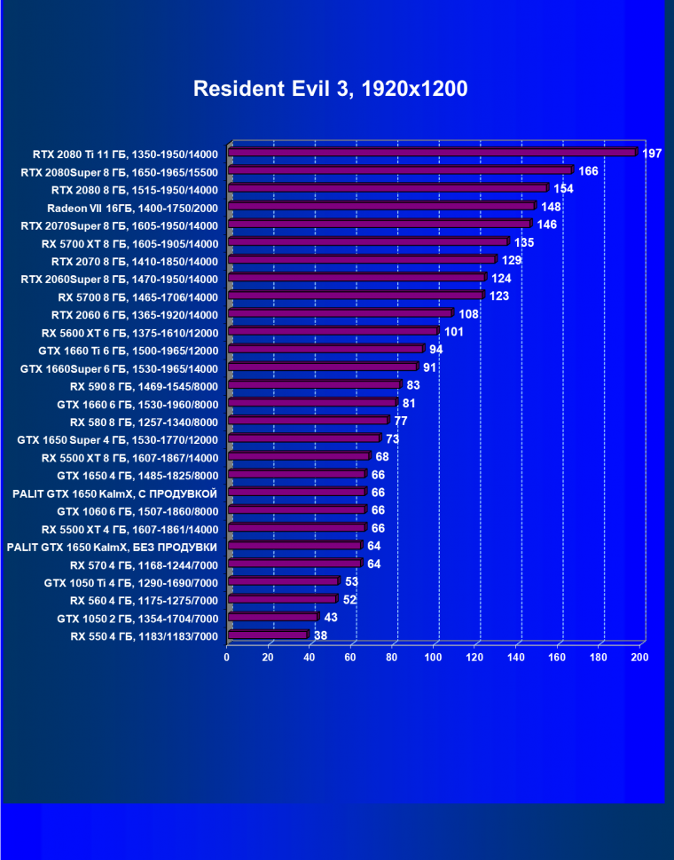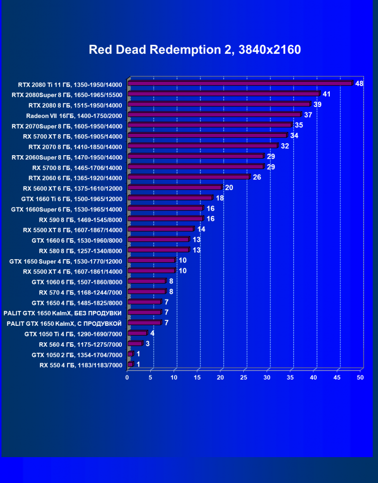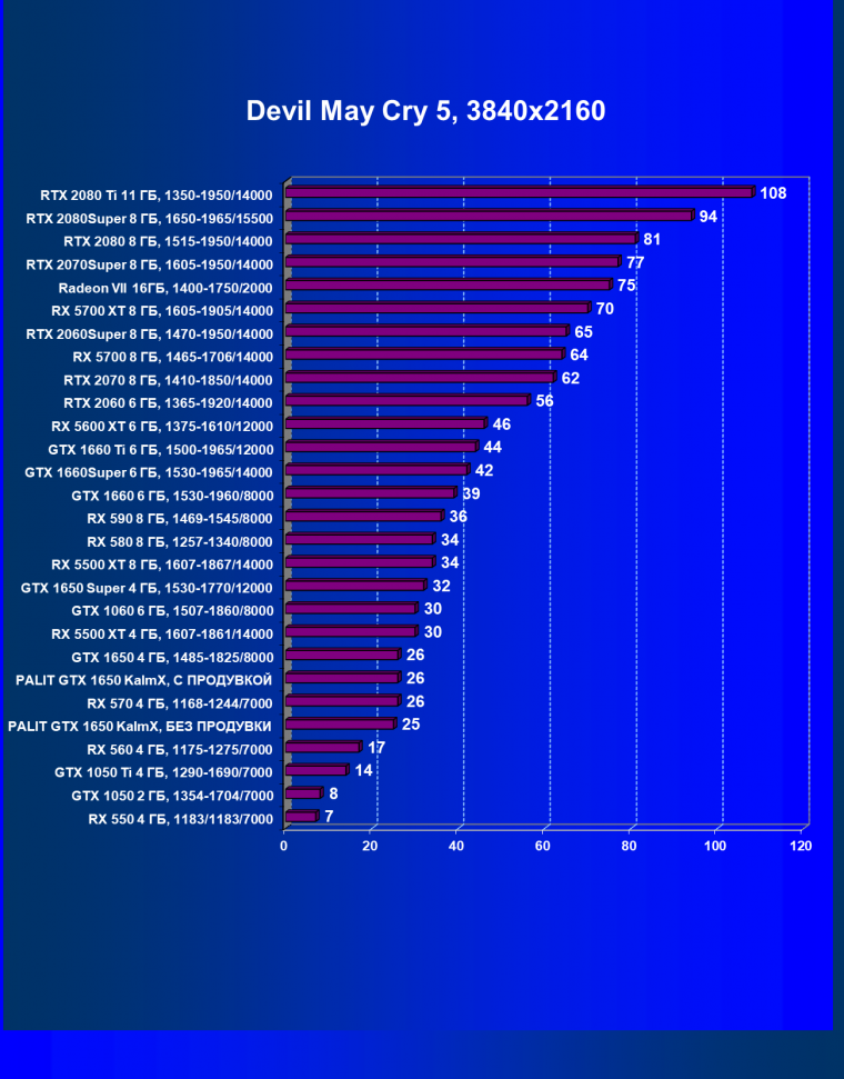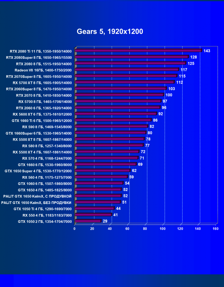 | 07 | RX 5500 XT 4 ГБ, 1607—1861/14000 | 329 | 510 | 15 500 |