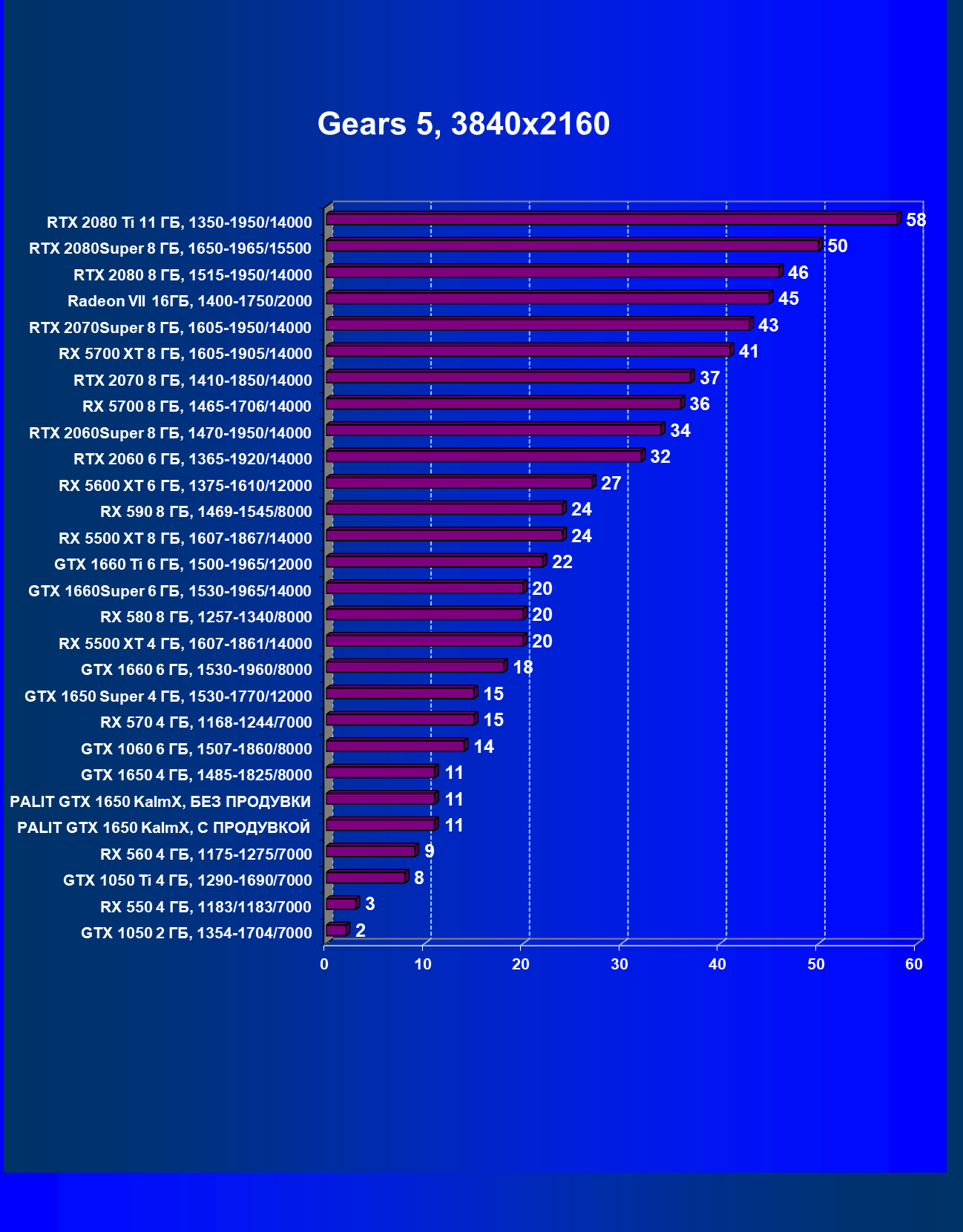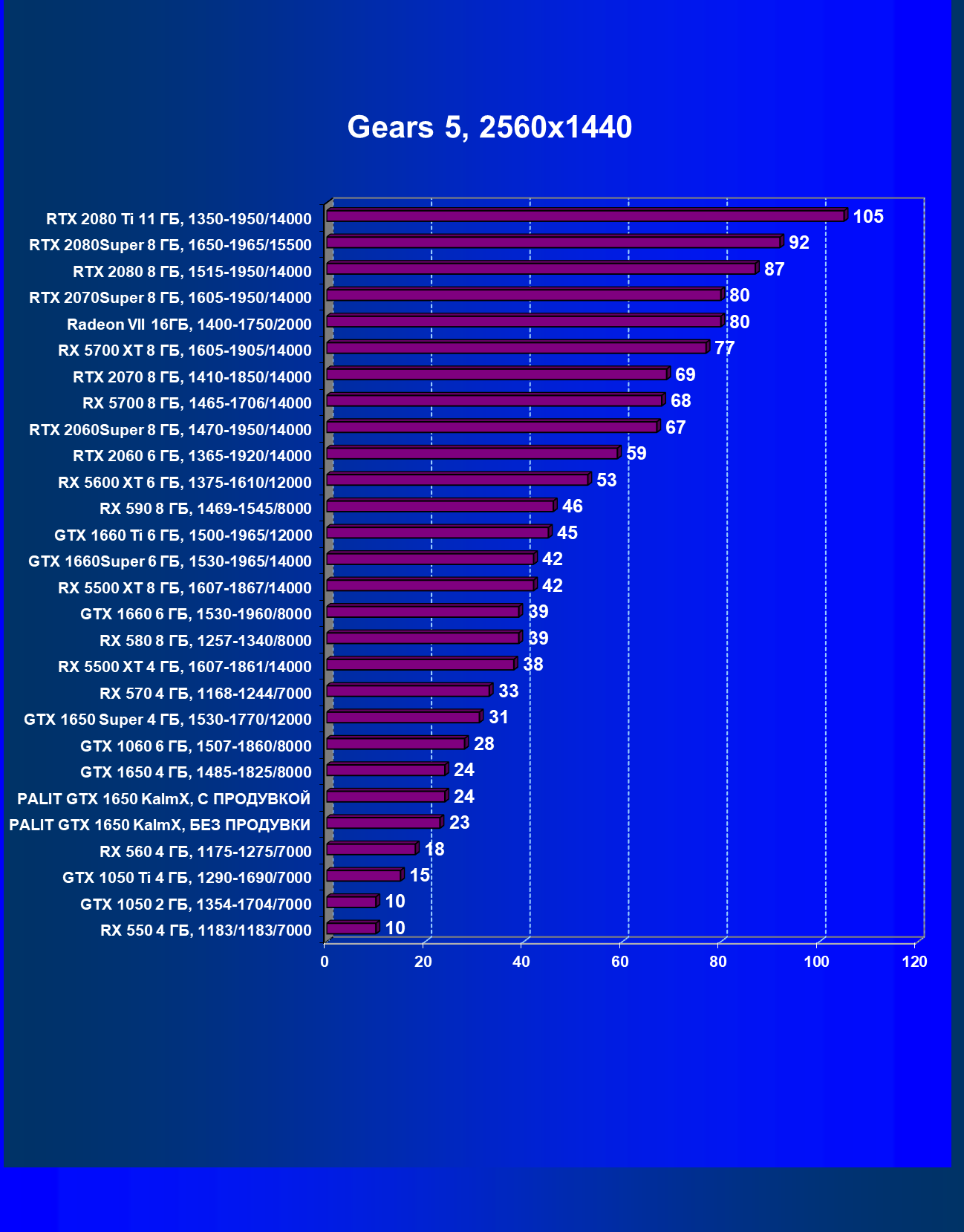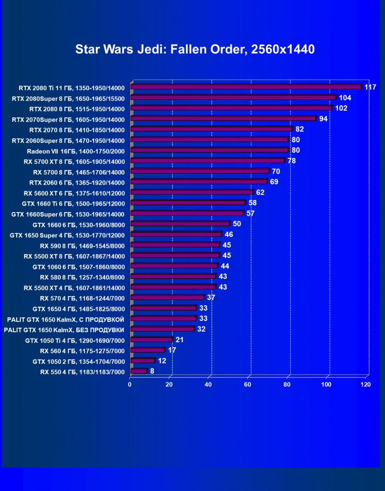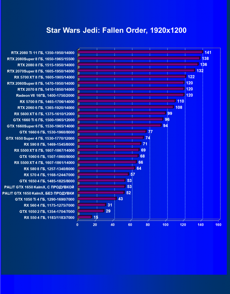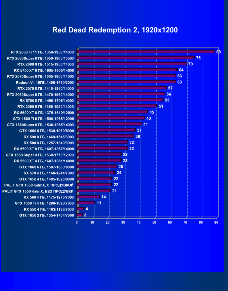 | 07 | RX 5500 XT 4 ГБ, 1607—1861/14000 | 329 | 510 | 15 500 |