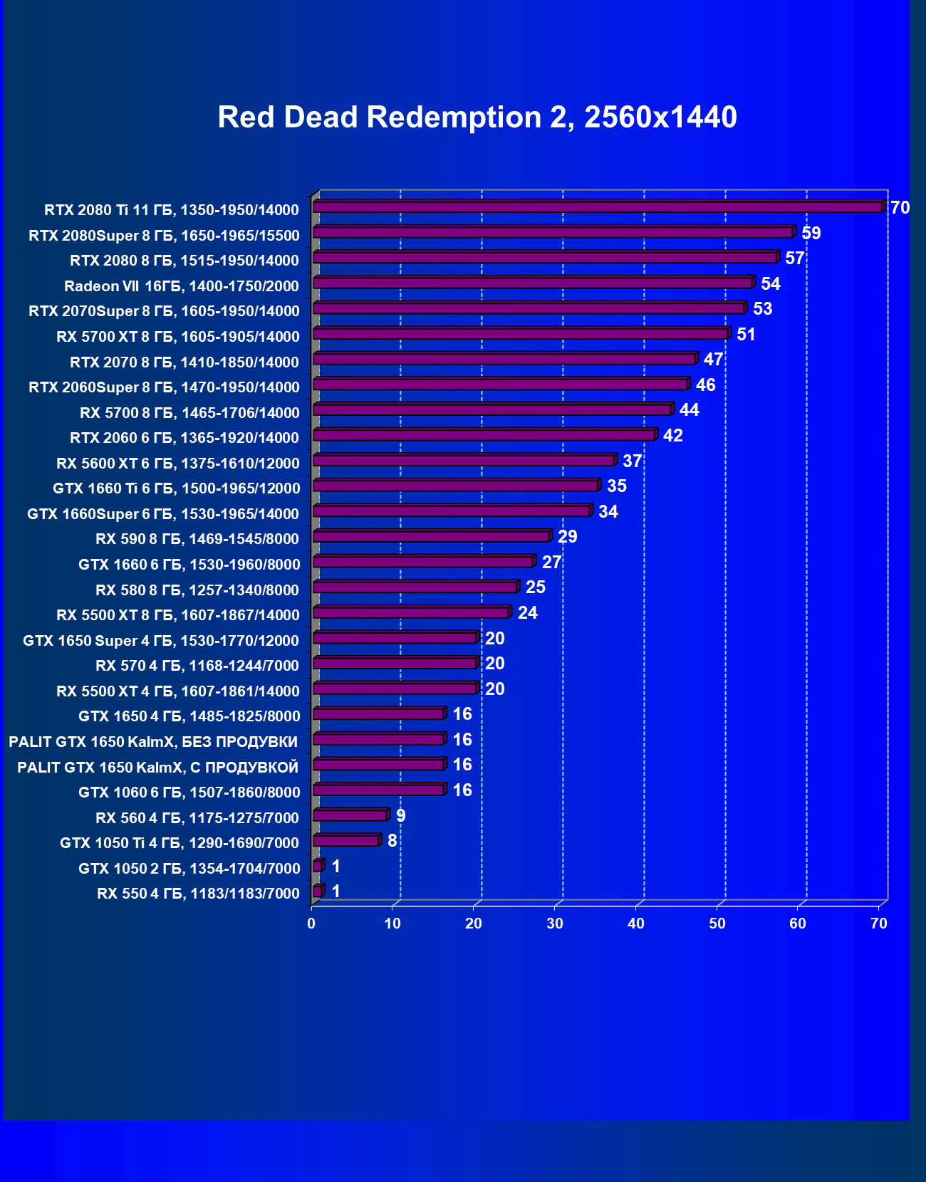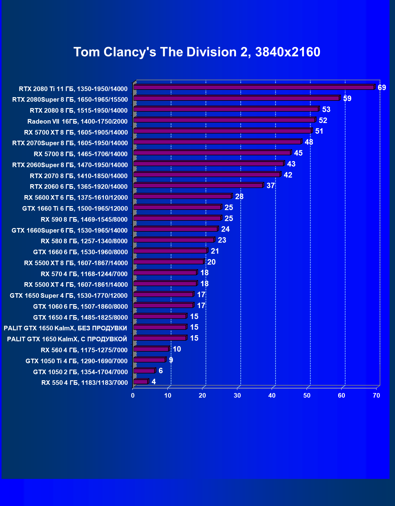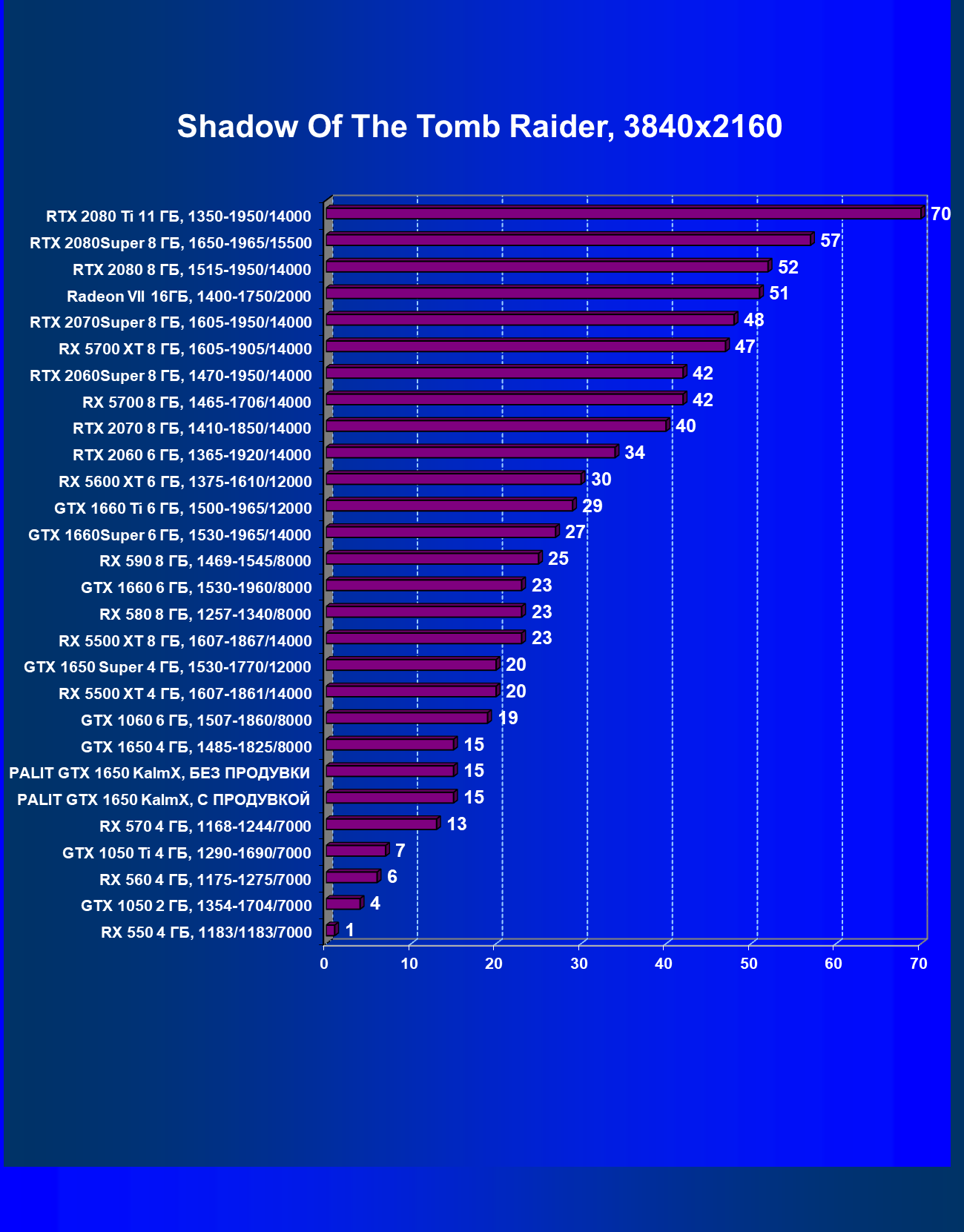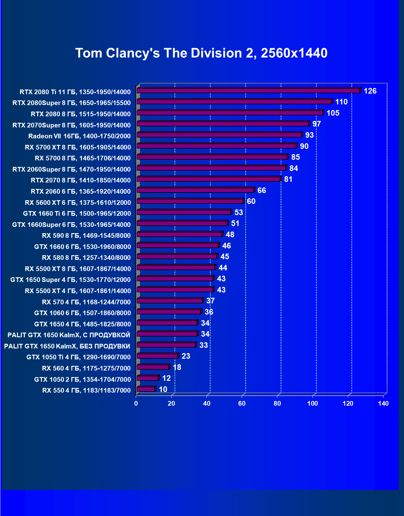 | 07 | RX 5500 XT 4 ГБ, 1607—1861/14000 | 329 | 510 | 15 500 |