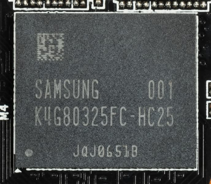 Карта имеет 4 ГБ памяти GDDR5 SDRAM, размещенной в 4 микросхемах по 8 Гбит на лицевой стороне PCB. Микросхемы памяти Samsung (GDDR5) рассчитаны на номинальную частоту работы в 2500 (10000) МГц