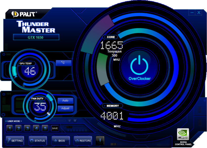 Управление работой карты обеспечивается с помощью фирменной утилиты Thunder Master.
