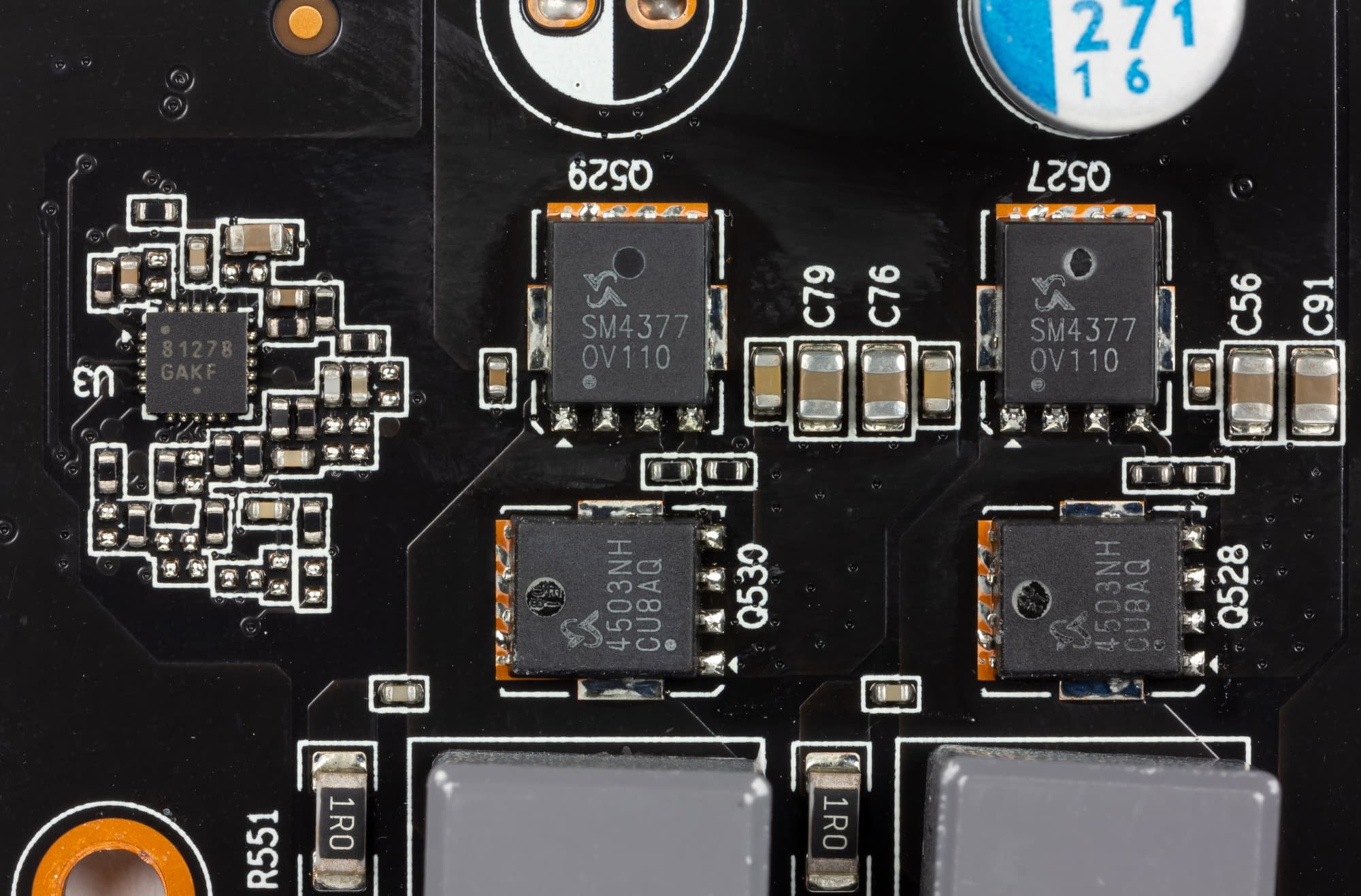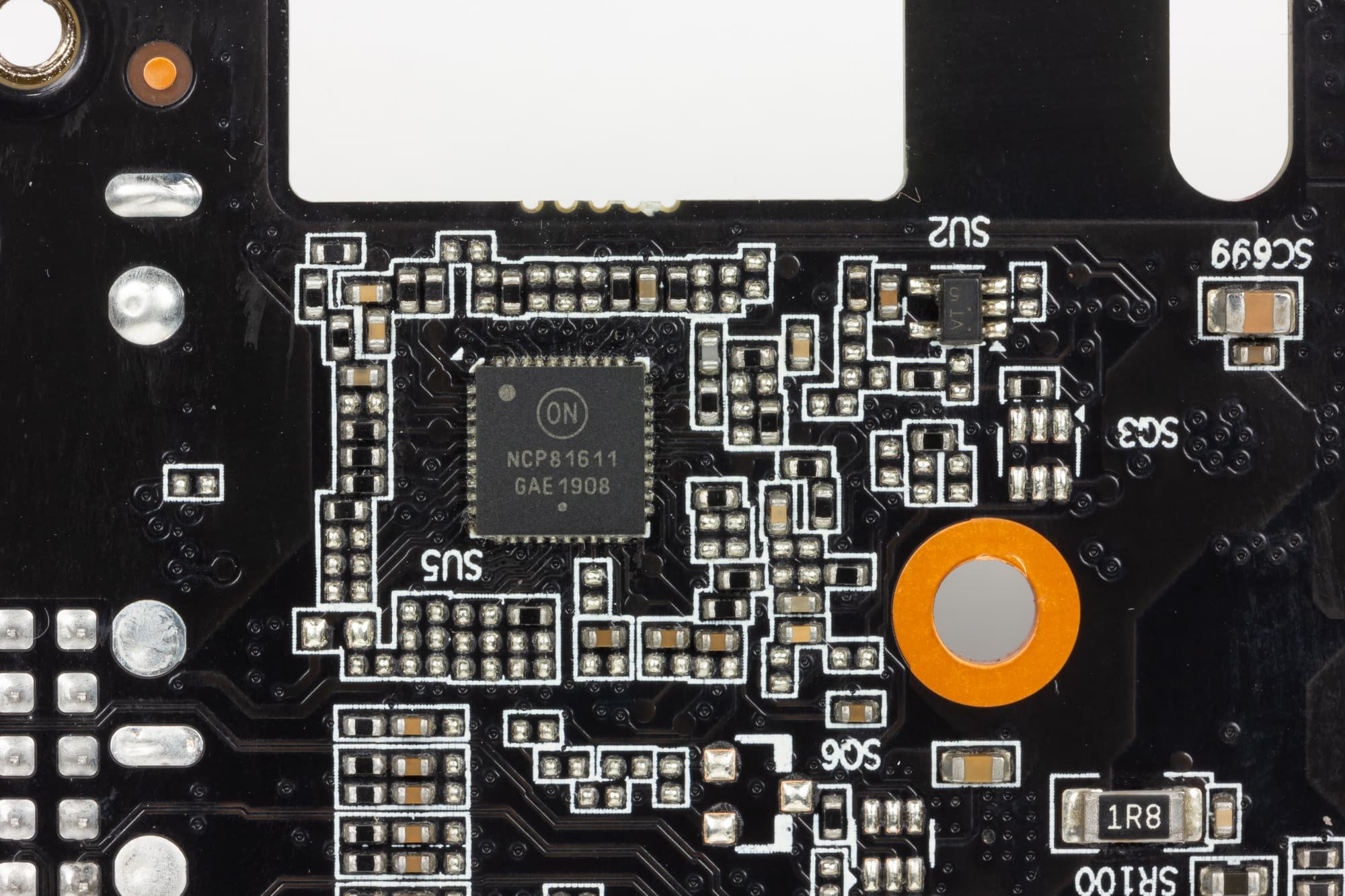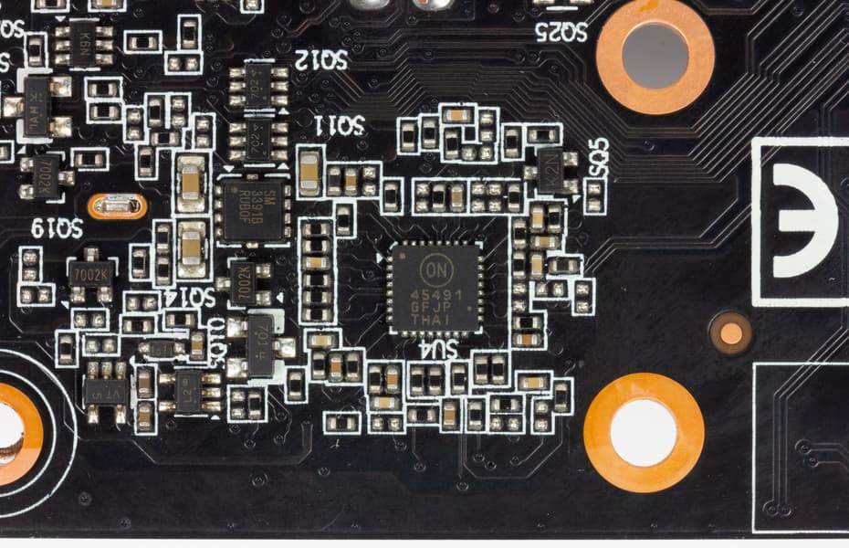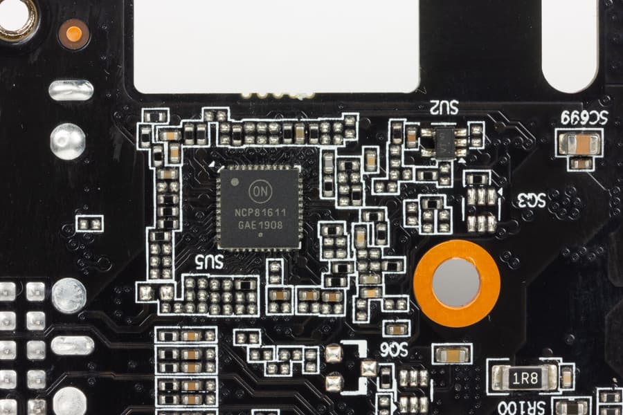 а управляется все цифровым контроллером NCP81610 производства On Semiconductors (он расположен на оборотной стороне карты).