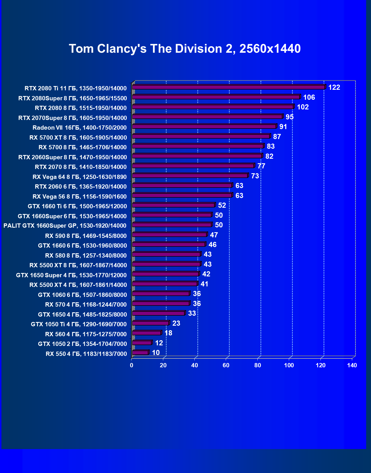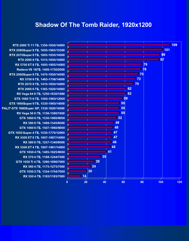 | 15 | GTX 1660 Super 6 ГБ, 1530—1965/14000 | 540 | 362 | 14 900 |