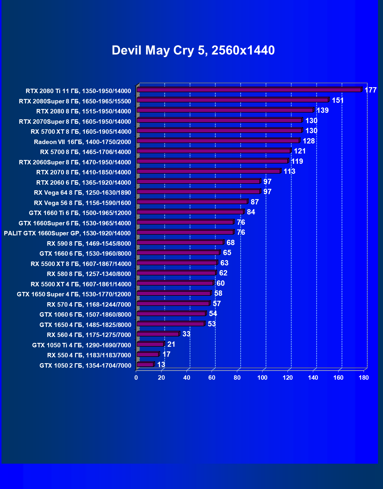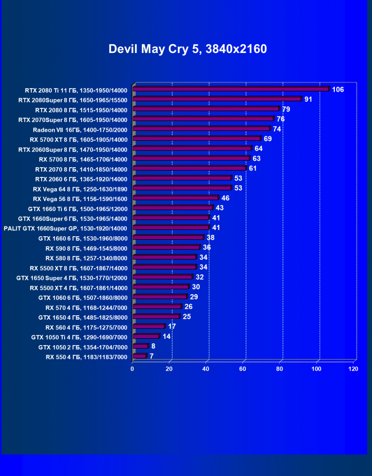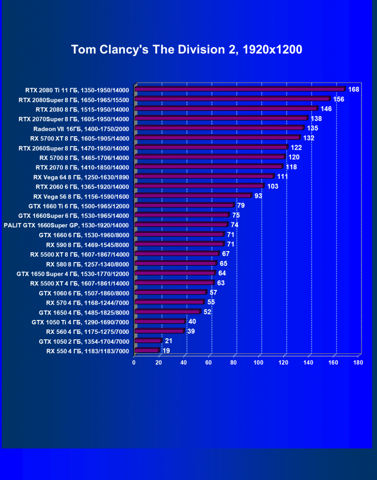 | 05 | GTX 1660 Ti 6 ГБ, 1500—1965/12000 | 362 | 590 | 16 300 |