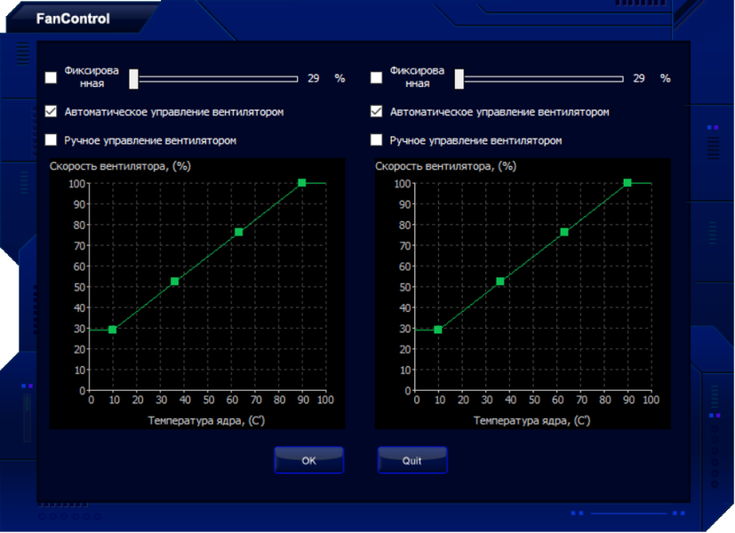 Еще можно вручную настроить работу вентиляторов.