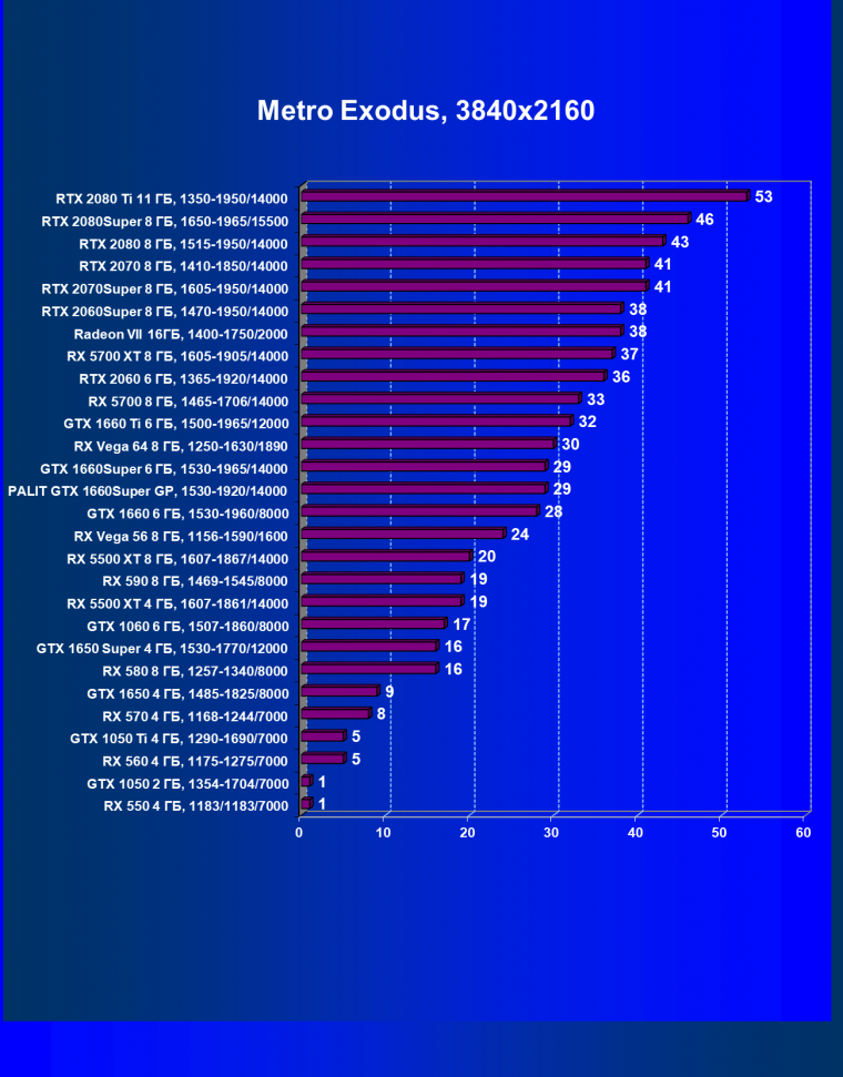 | 04 | GTX 1660 Super 6 ГБ, 1530—1965/14000 | 362 | 540 | 14 900 |