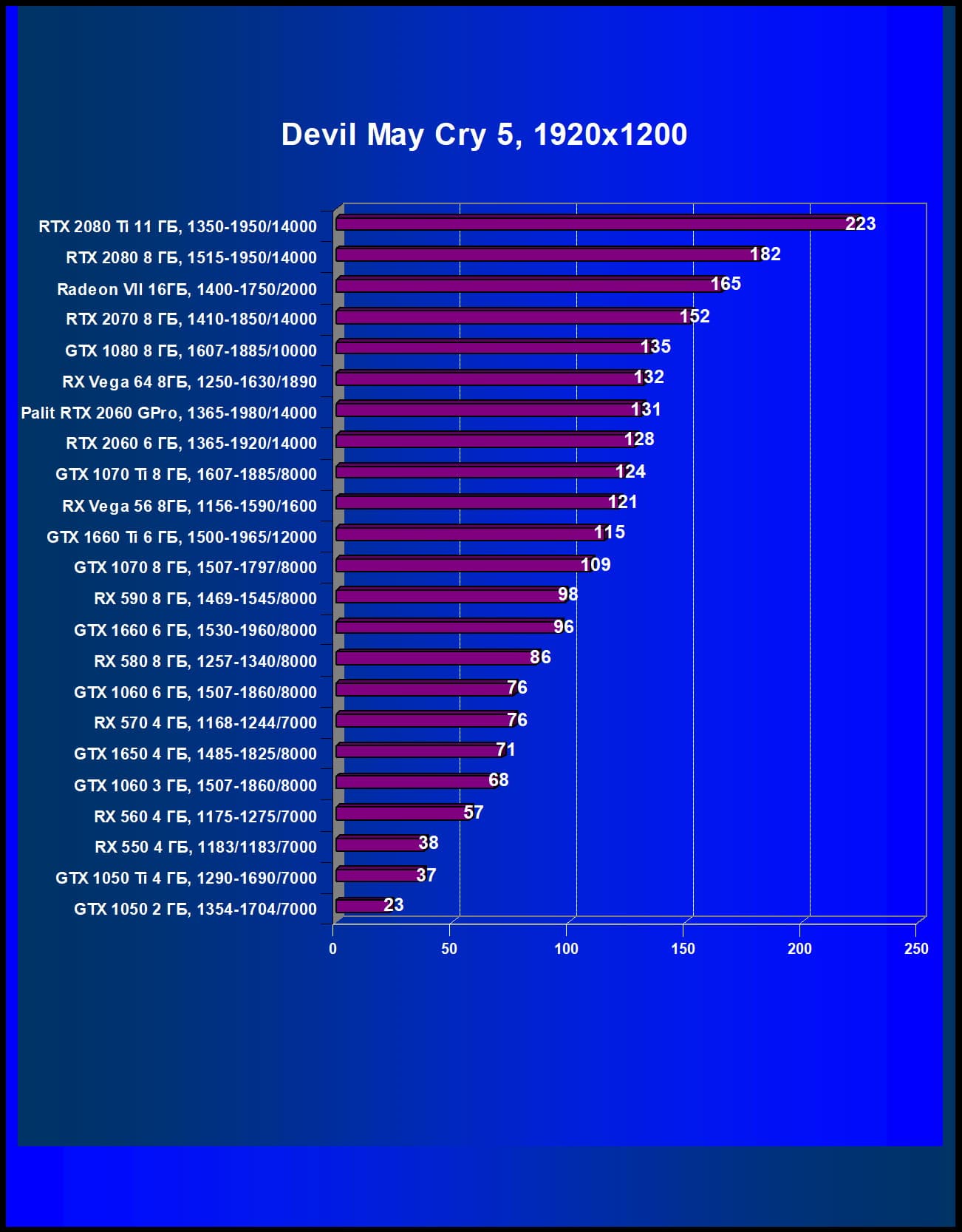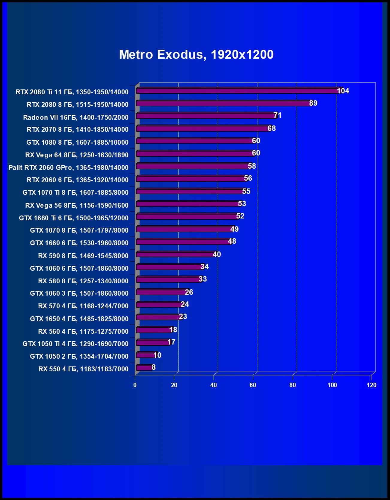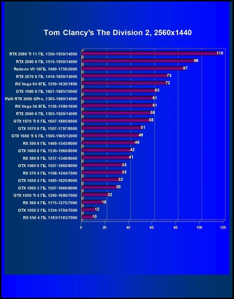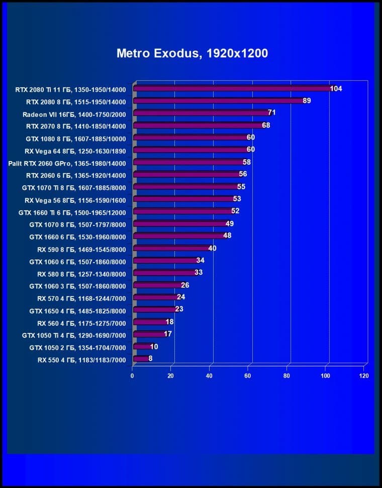 | 05 | Palit RTX 2060 GamingPro, 1365—1980/14000 | 289 | 680 | 23 500 |