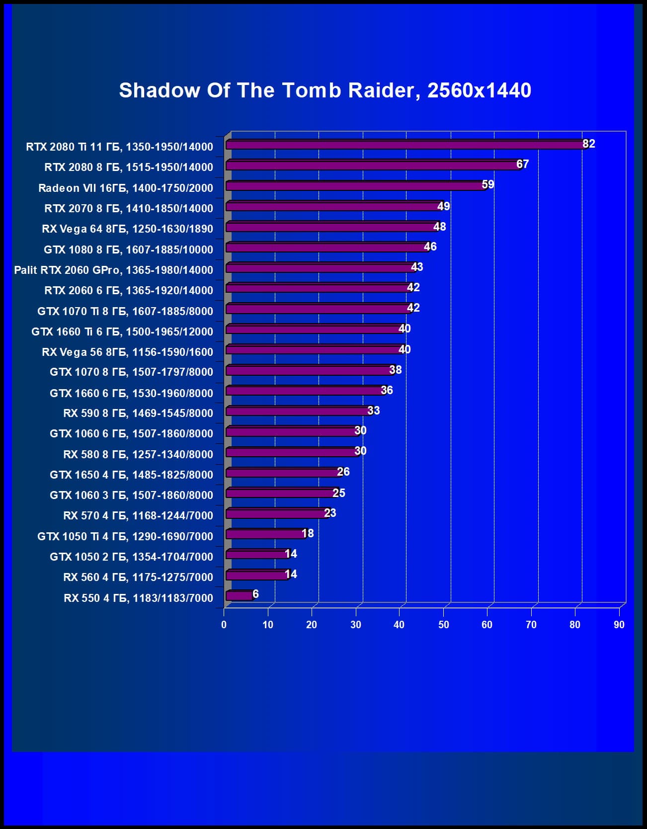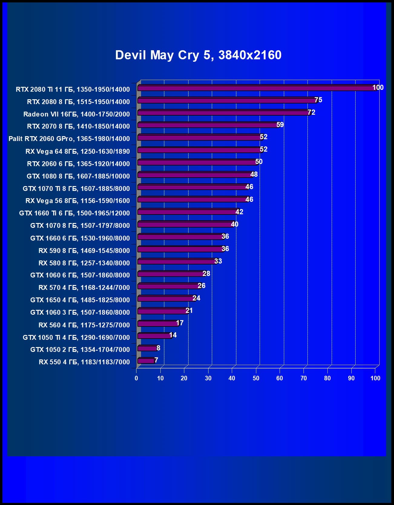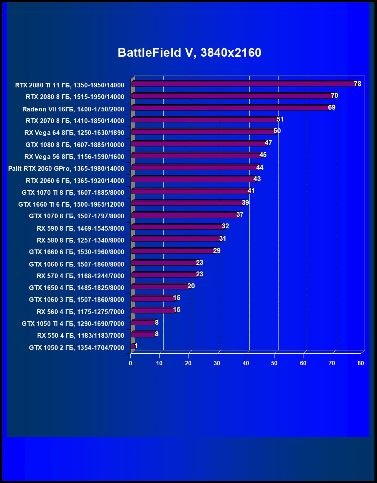 | 05 | Palit RTX 2060 GamingPro, 1365—1980/14000 | 289 | 680 | 23 500 |