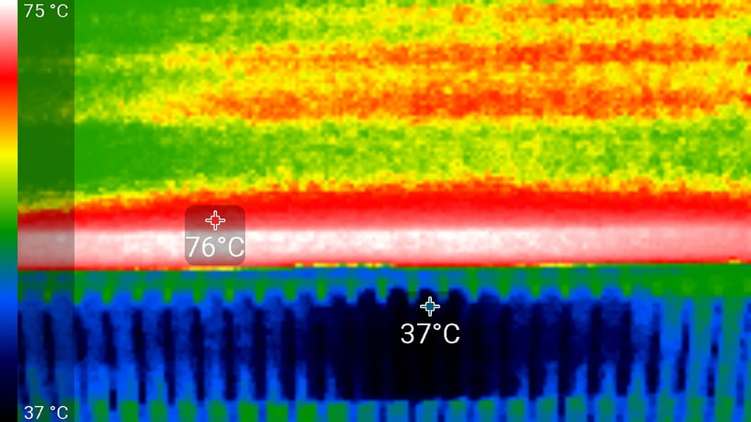 В режиме максимальной нагрузки в 3D температура достигала 73 °C. Вентиляторы при этом раскручивались до 1705 оборотов в минуту, шум вырастал до 31,8 дБА, был слышен, но точно не был громким.