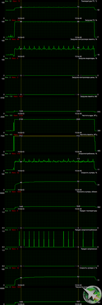 При ручном разгоне показатели температуры и частота вращения вентиляторов практически не меняются.