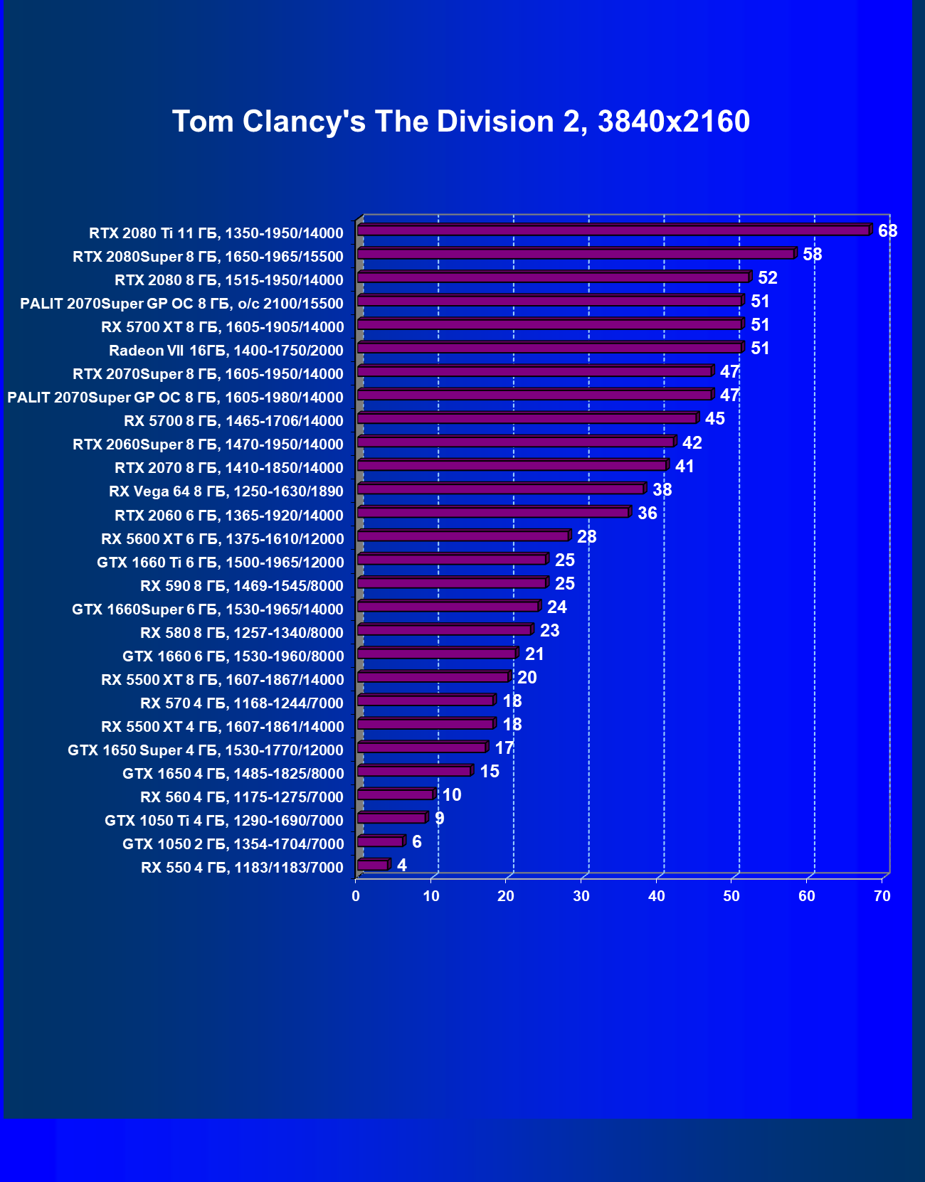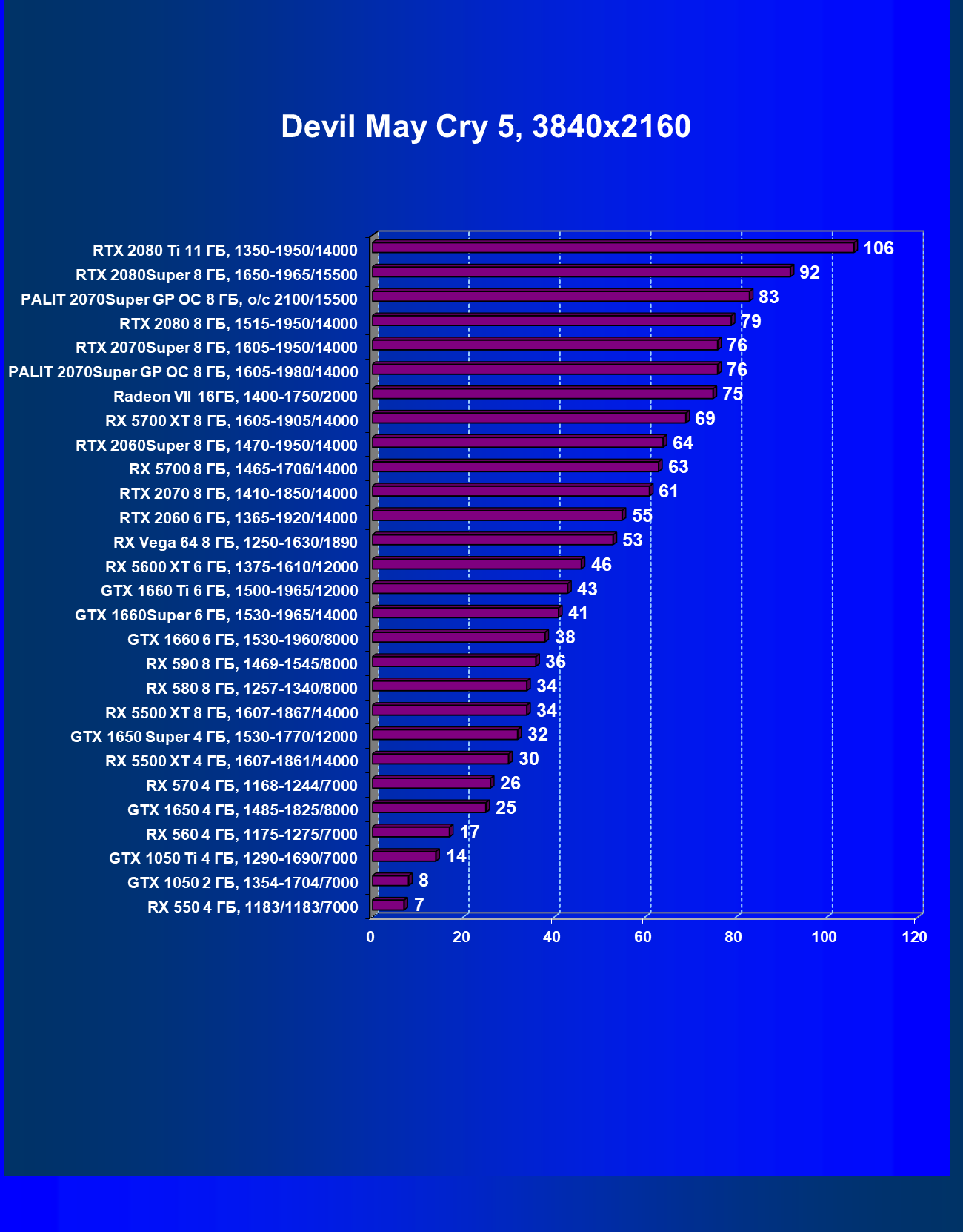 | 06 | RTX 2070 Super 8 ГБ, 1605—1950/14000 | 1220 | 358 | 34 100 |