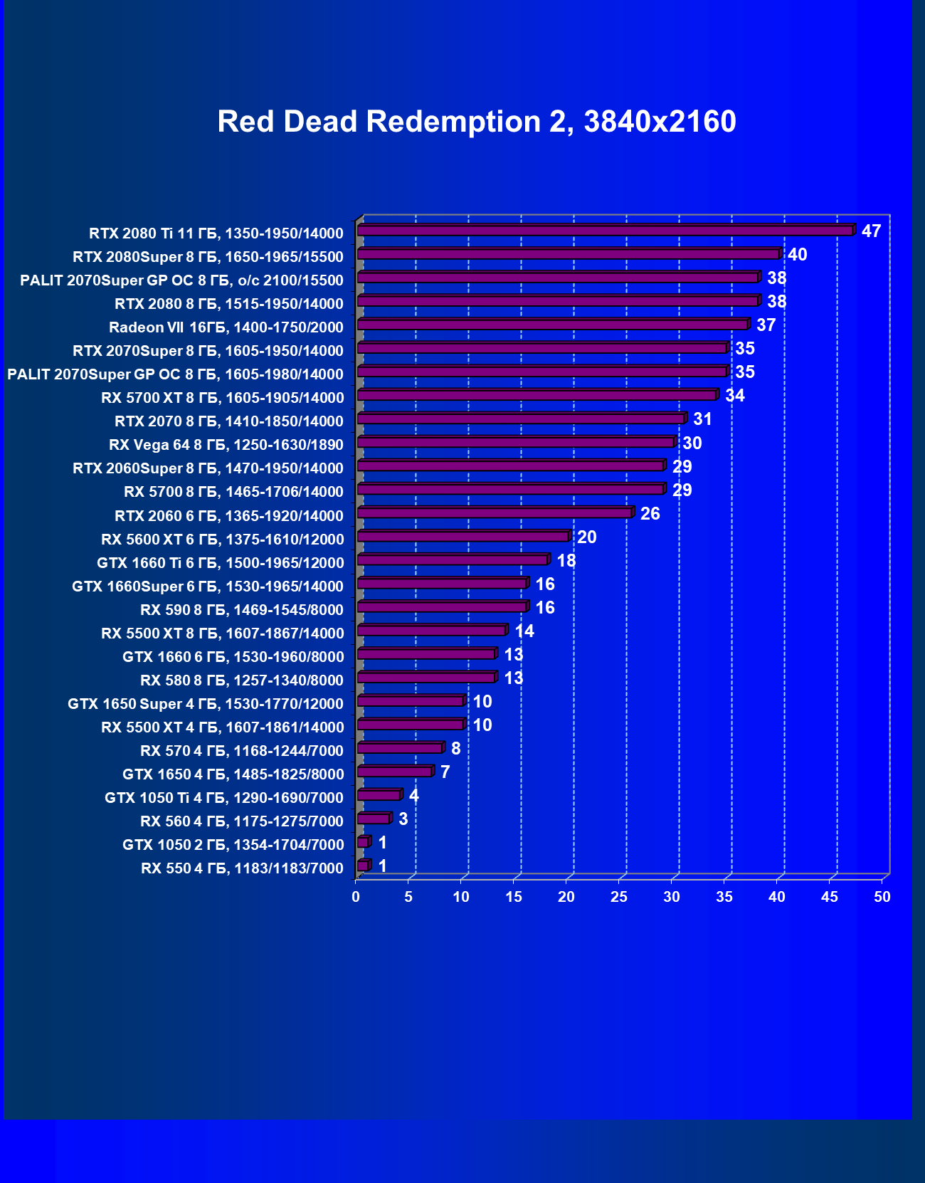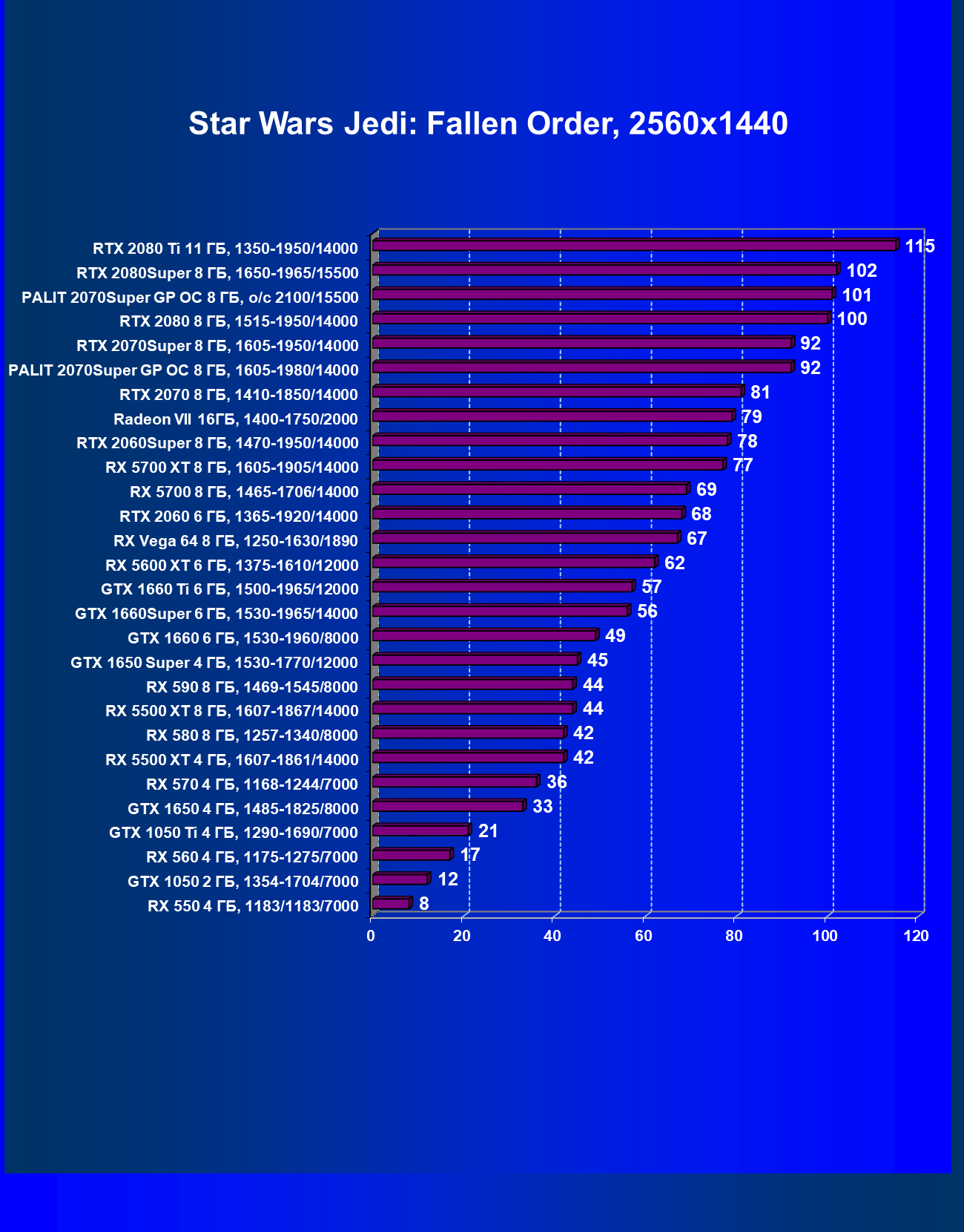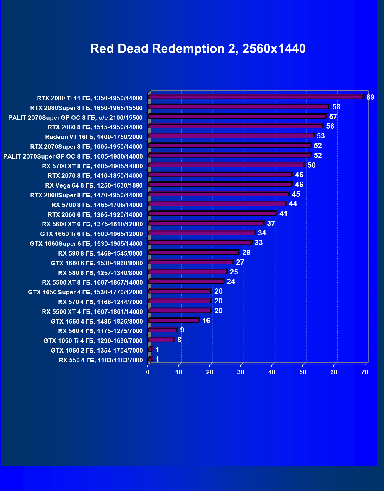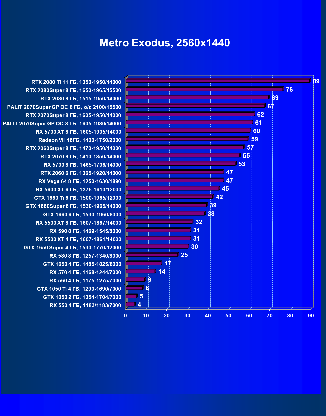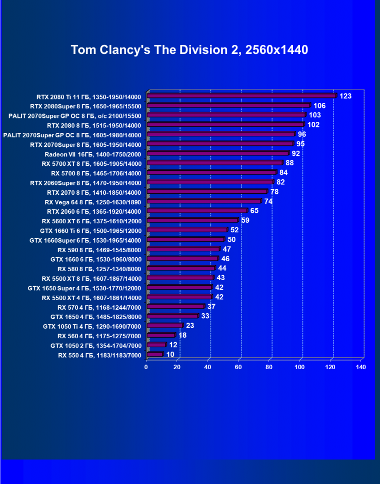 | 08 | RX 5700 XT 8 ГБ, 1605—1905/14000 | 1090 | 404 | 27 000 |