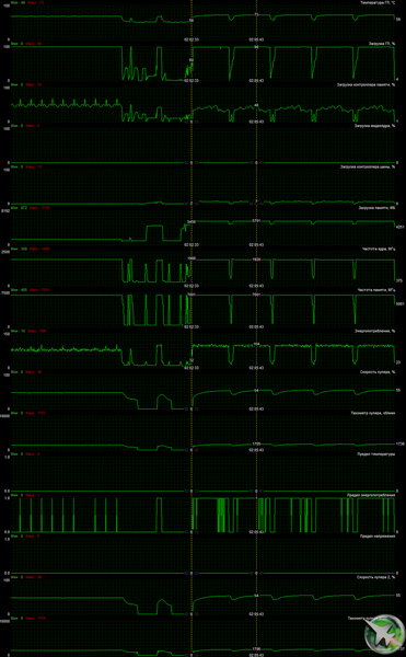 Следует отметить, что наш экземпляр карты иногда «стрекотал» дросселями. Этот «стрекот» можно расслышать за фоновым шумом на видео ниже в разделе шума. Наличие или отсутствие подобных звуков не зависит ни от модели, ни от партии выпуска, ни даже от конкретного экземпляра видеокарты. На этот эффект влияет сочетание конкретной видеокарты, конкретной материнской платы и конкретного блока питания. Закономерности в подобных звуках дросселей до сих пор никто найти/уловить не смог.