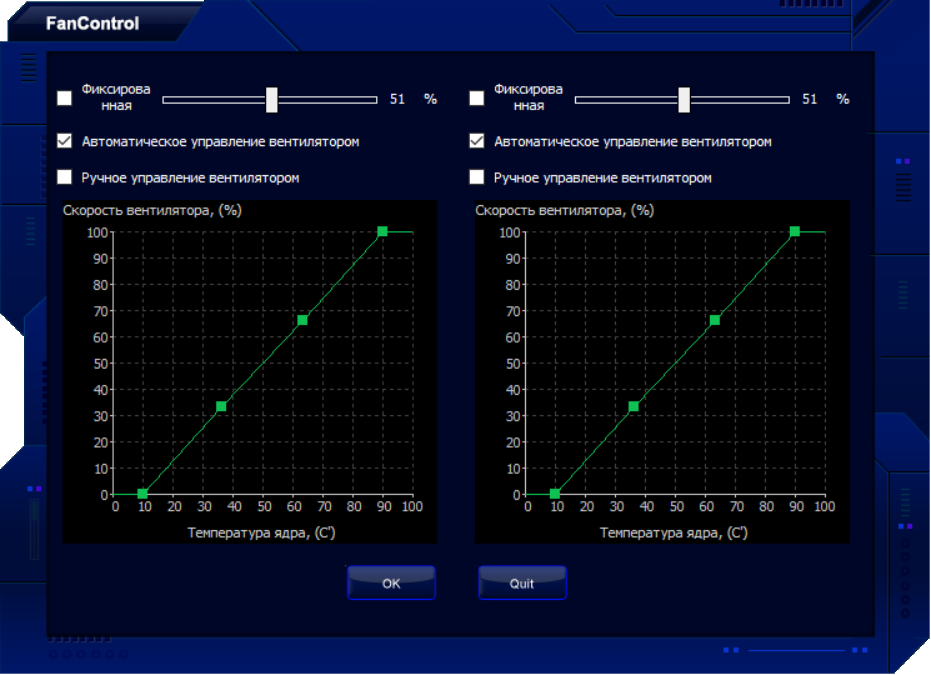 Управлять режимами работы вентиляторов: