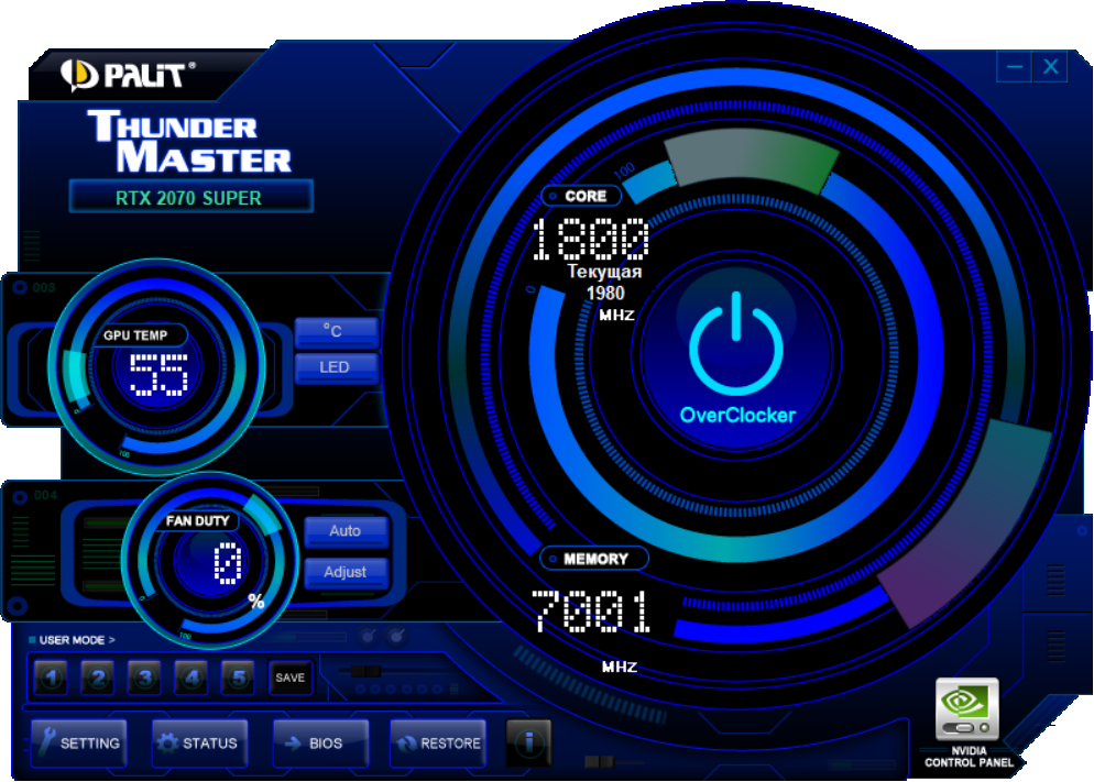 Управление работой карты обеспечивается с помощью фирменной утилиты Thunder Master.