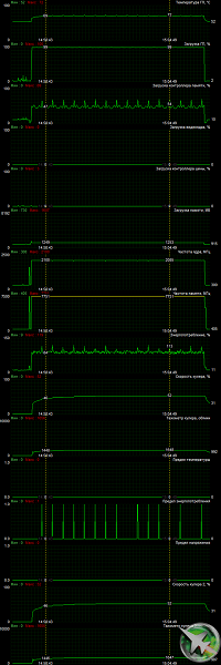 После 6-часового прогона под нагрузкой максимальная температура ядра не превысила 73 градусов, что является очень хорошим результатом для видеокарты такого уровня.