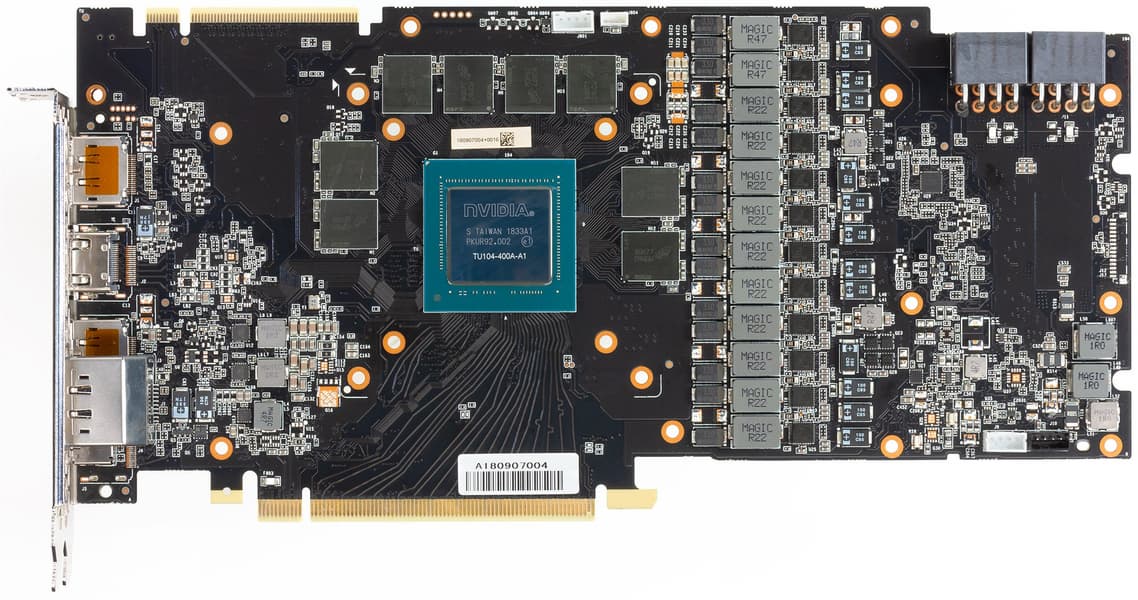 Карта имеет 8 ГБ памяти GDDR6 SDRAM, размещенной в 8 микросхемах по 8 Гбит на лицевой стороне PCB. Микросхемы памяти Micron (GDDR6) рассчитаны на номинальную частоту работы в 3500 (14000) МГц