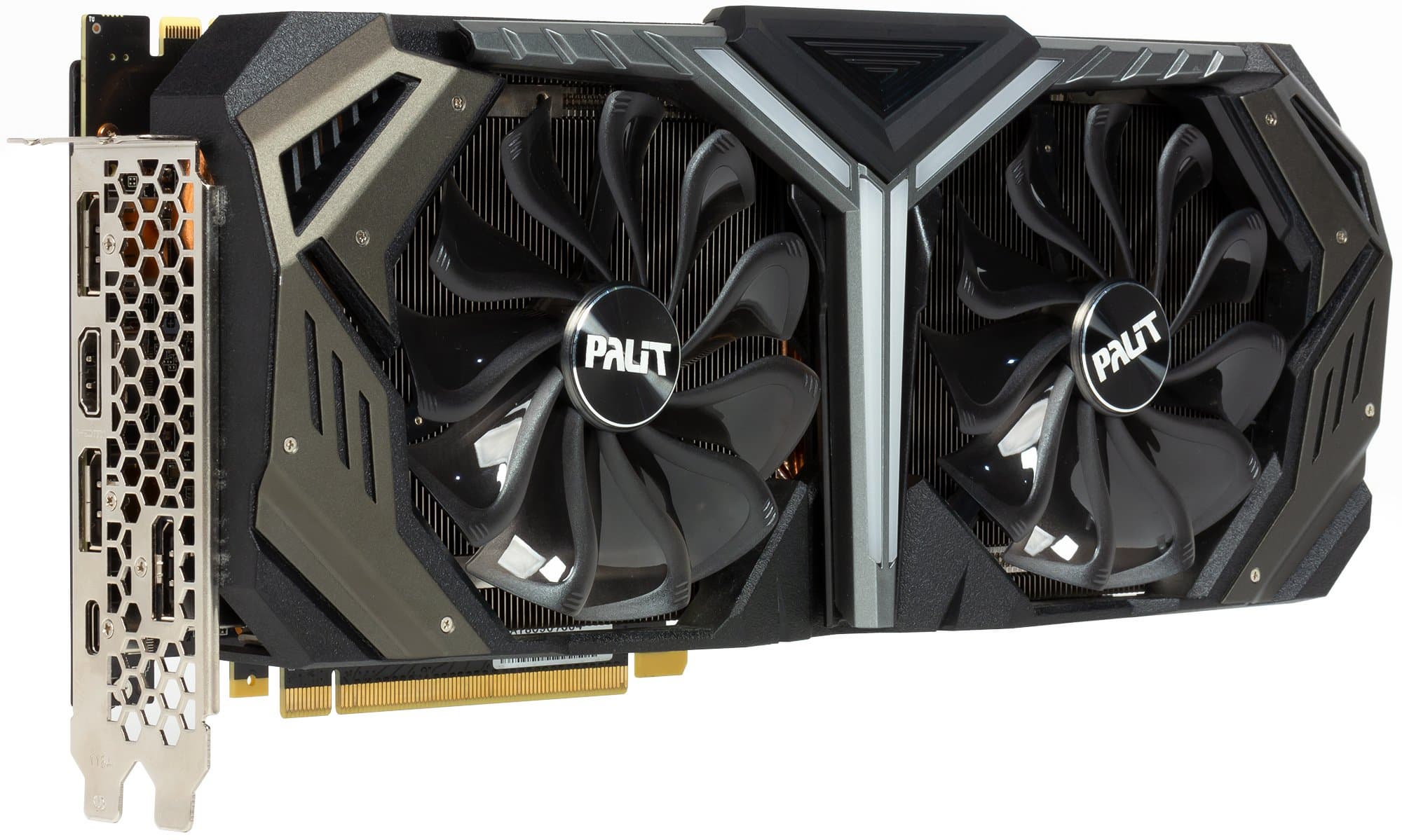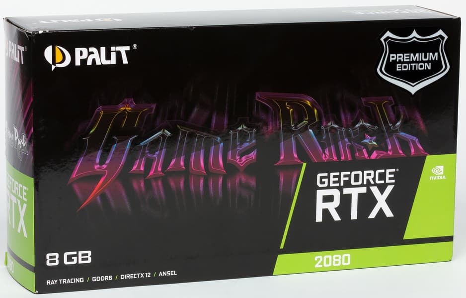 Palit GeForce RTX 2080 GameRock Premium 8G (8 ГБ) является отличным вариантом RTX 2080, позволяющим играть на максимальных настройках графики в разрешении 2.5К и даже 4К. Частоты у этой карты повышены на 10% относительно референсных значений RTX 2080 и на 3% относительно варианта Nvidia Founder’s Edition, так что ускоритель Palit быстрее и дешевле, то есть явно предпочтительнее. Вторым достоинством карты является очень эффективный и относительно тихий кулер, который, правда, немного увеличивает габариты платы относительно Founder’s Edition.