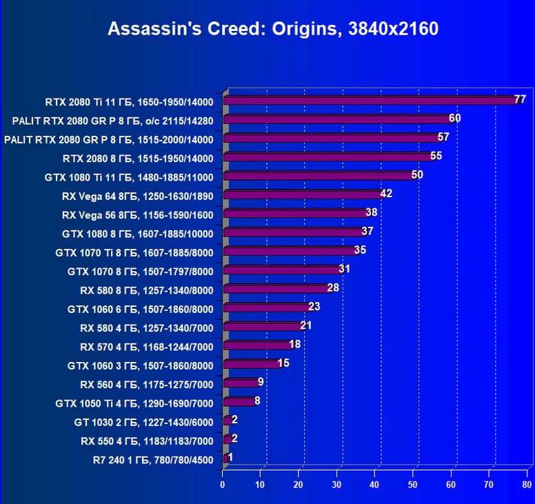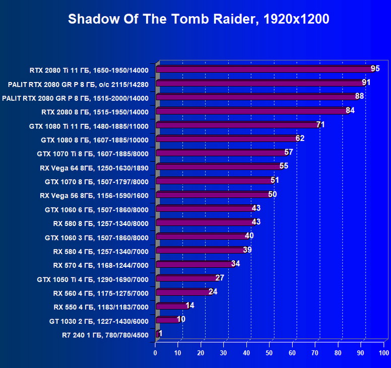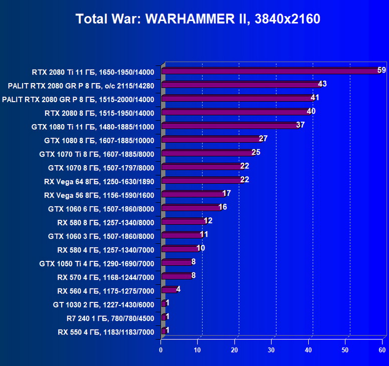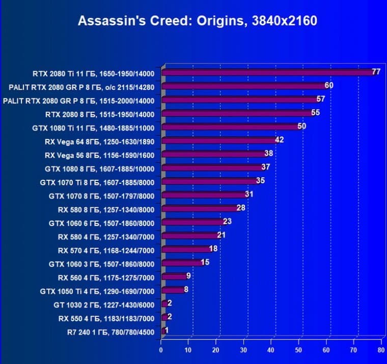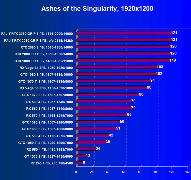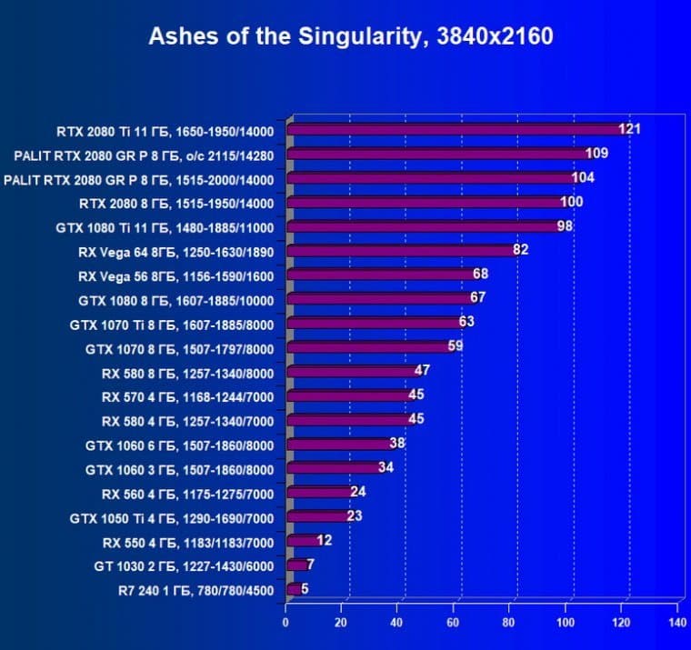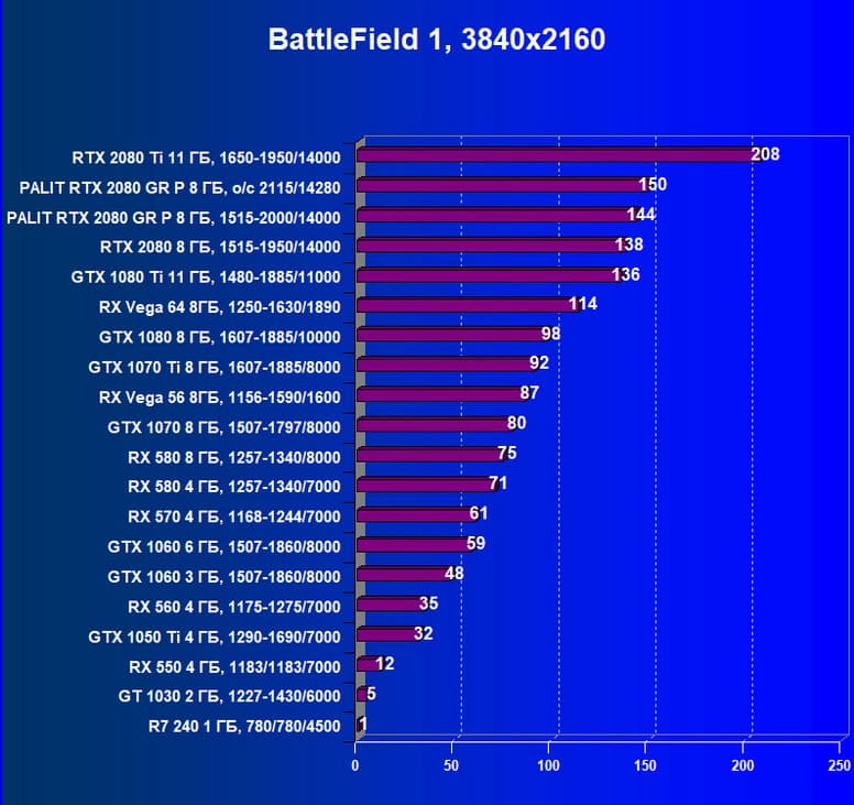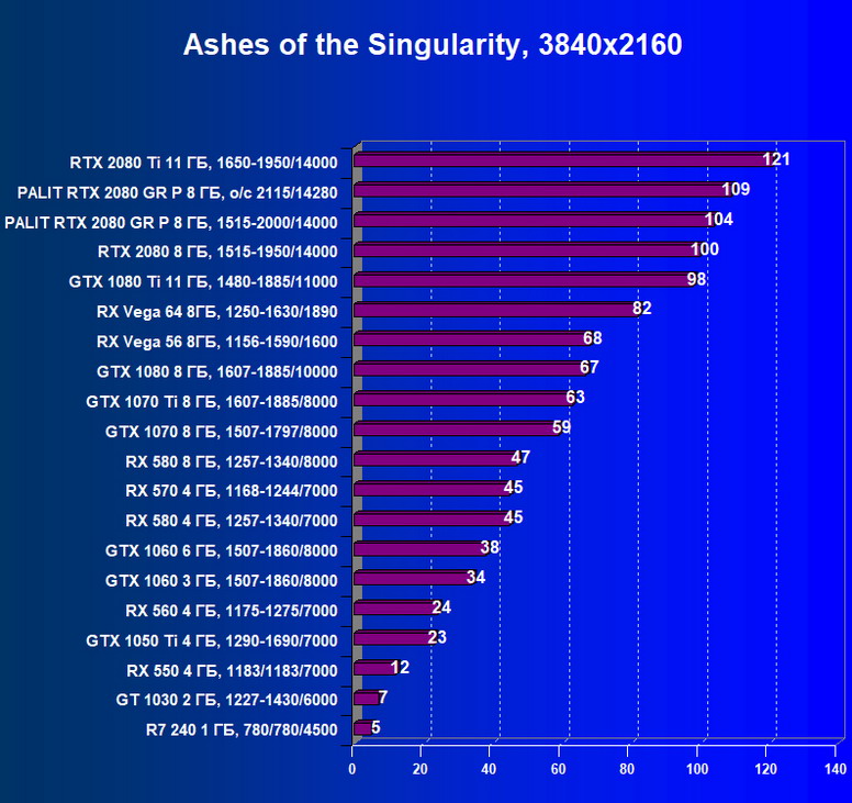 | 14 | GTX 1080 Ti 11 ГБ, 1480—1885/11000 | 718 | 4020 | 56 000 |