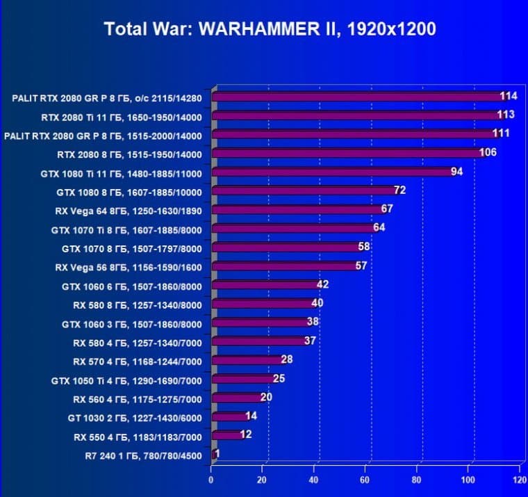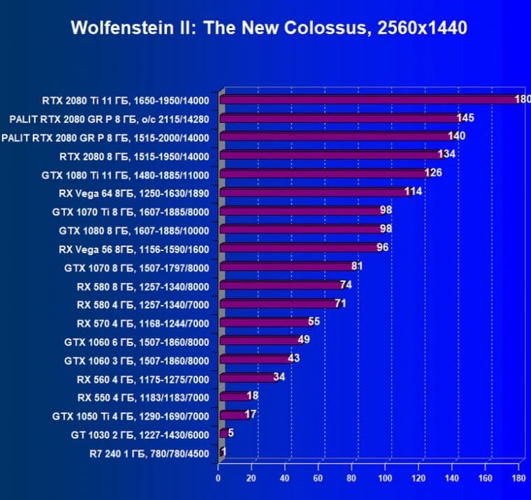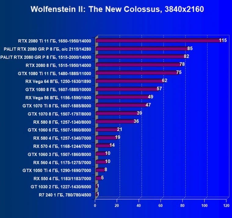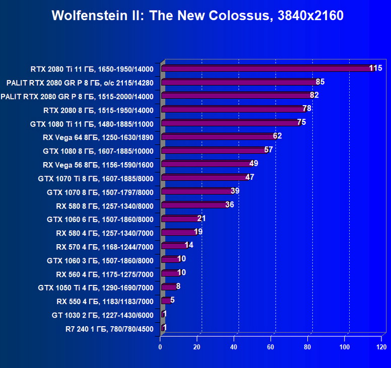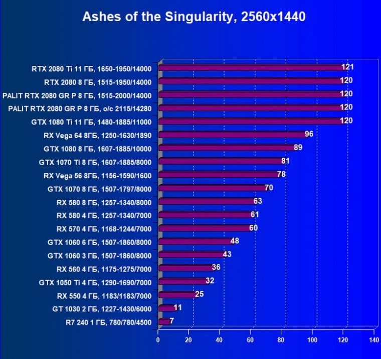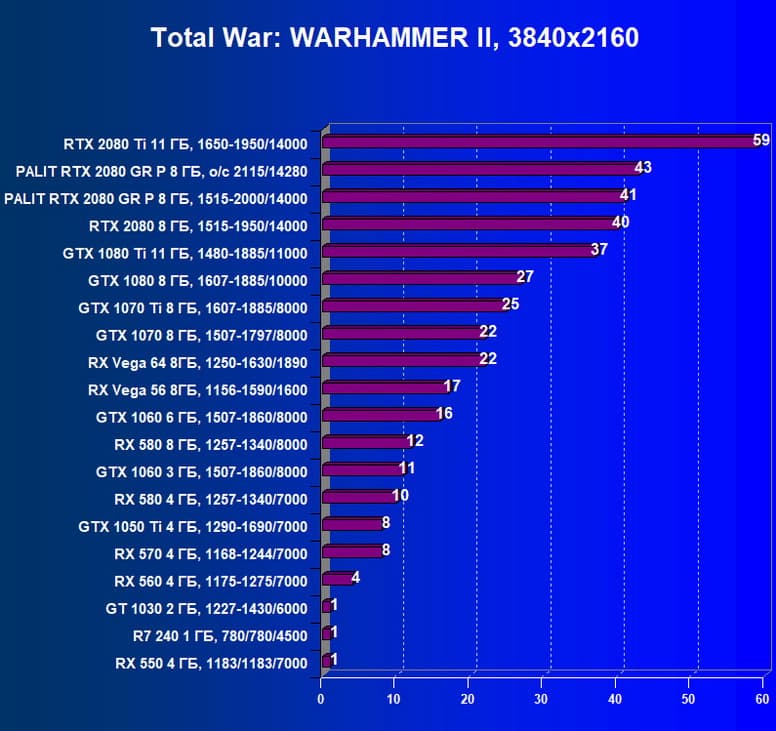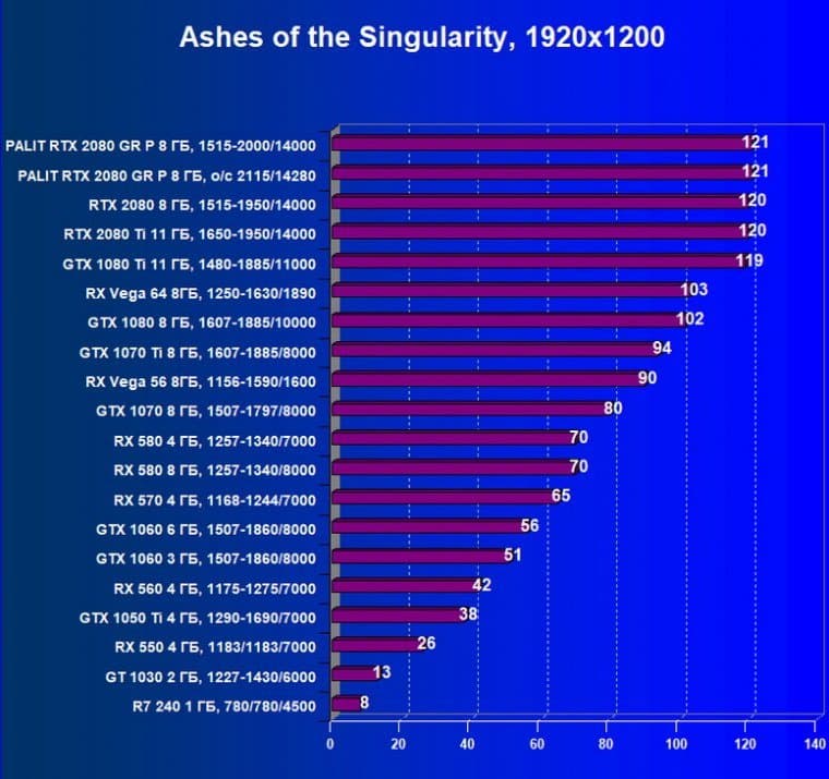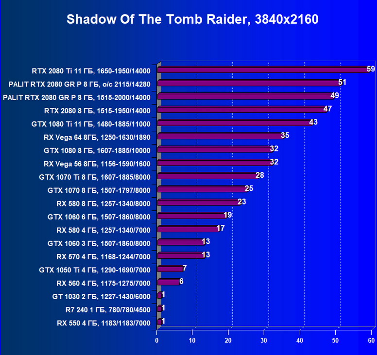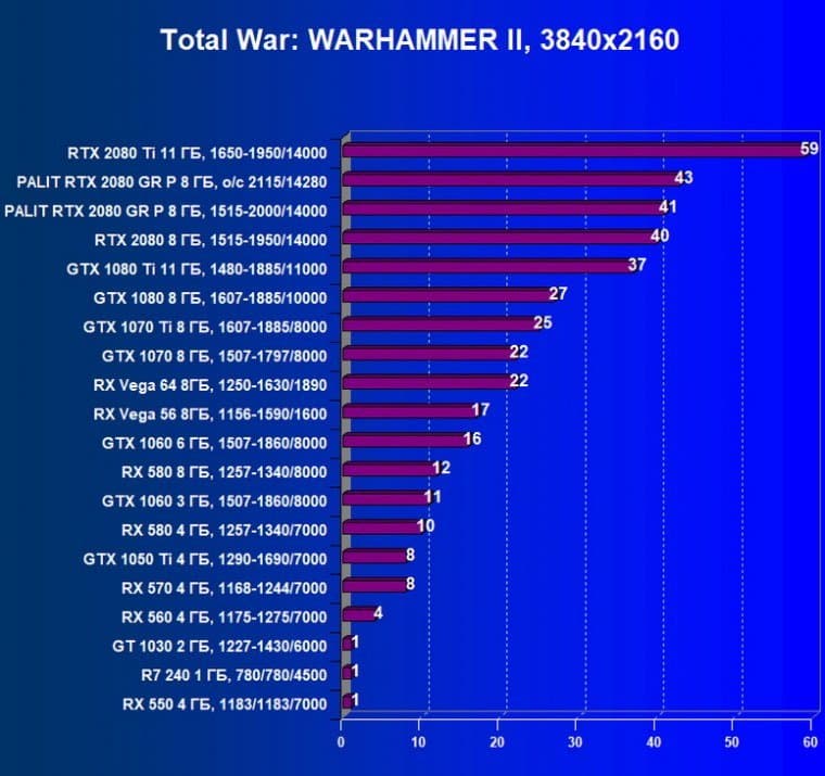 | 14 | GTX 1080 Ti 11 ГБ, 1480—1885/11000 | 718 | 4020 | 56 000 |