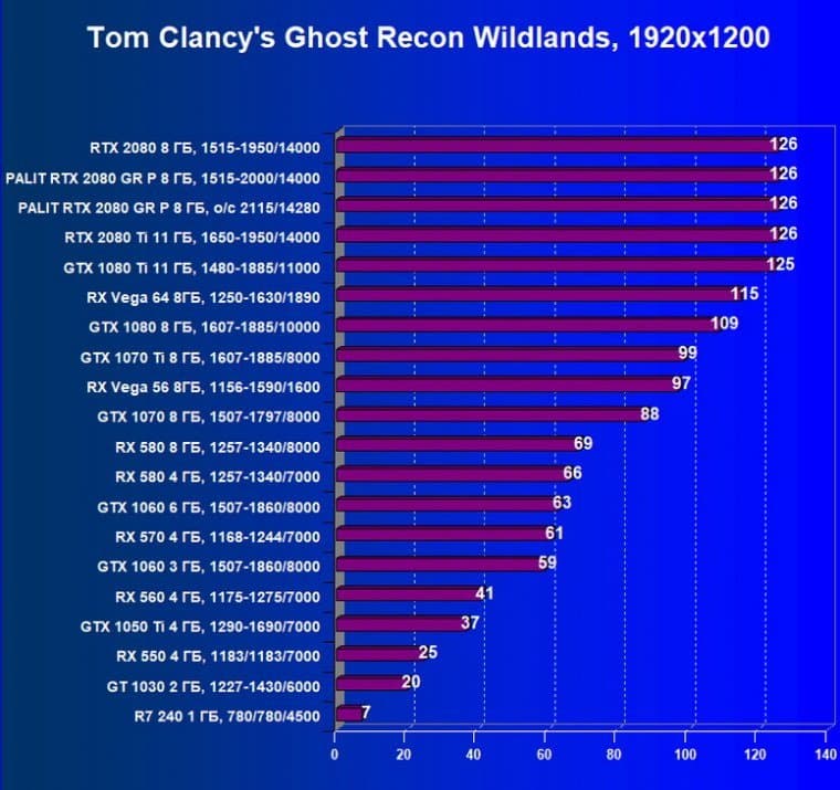 Вначале — краткие результаты нашего исследования этой видеокарты: чистой воды производительность по нашей субъективной градации, FPS в картинках. Формально Nvidia GeForce RTX 2080 идет на смену ускорителю Nvidia GeForce GTX 1080, однако цены RTX 2080 на момент написания материала значительно выше, они сравнимы с ценами Nvidia GeForce GTX 1080 Ti и AMD Radeon RX Vega 64. Поэтому с двумя последними и будем сравнивать.