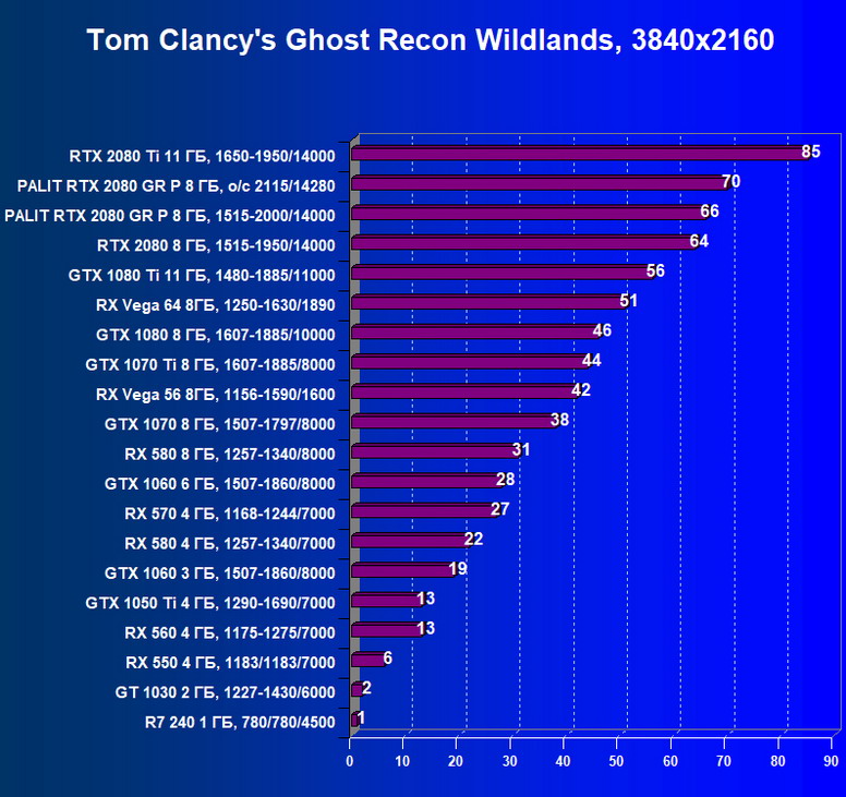 | 13 | RTX 2080 8 ГБ, 1515—1950/14000 | 722 | 4620 | 63 990 |