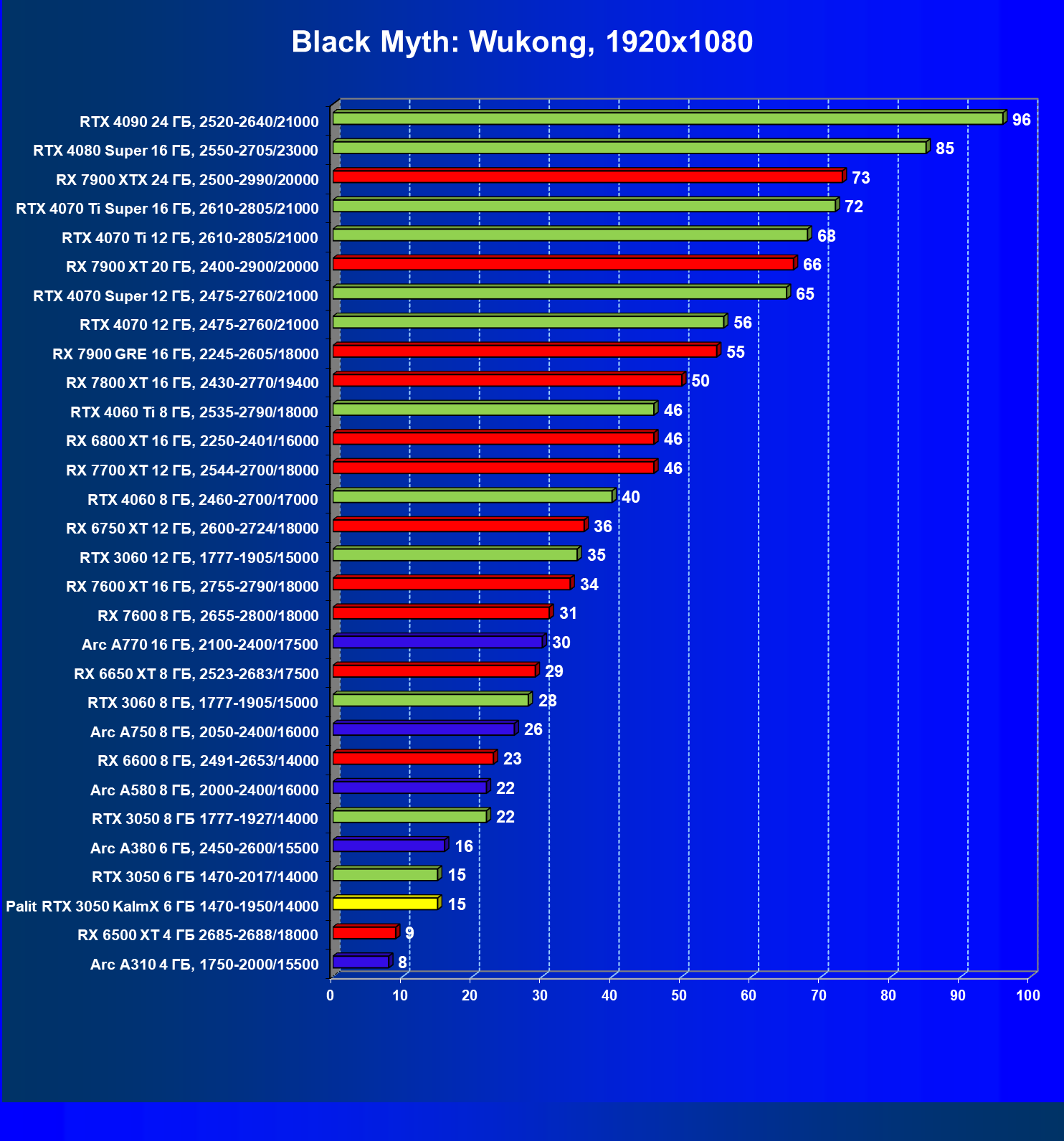 | 26 | Arc A380 6 ГБ, 2450—2600/15500 | 318 | 199 | 16 000 |