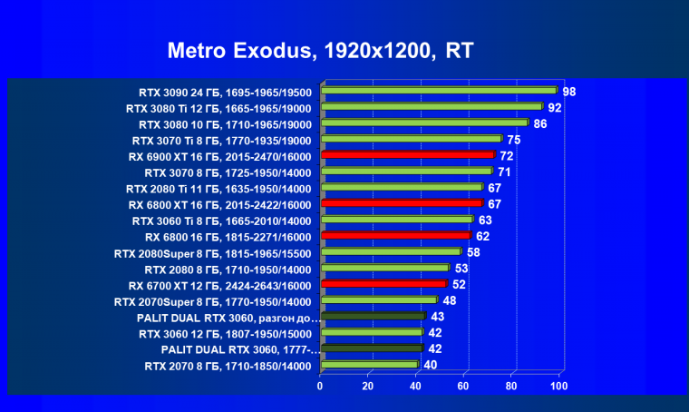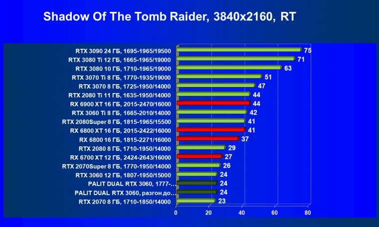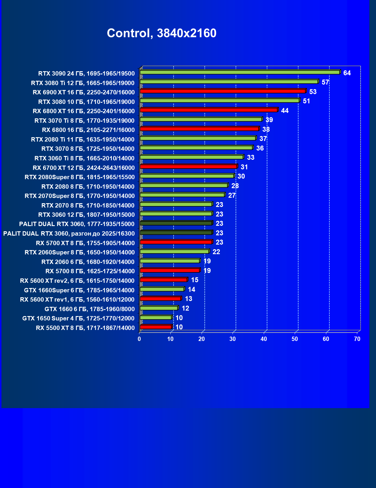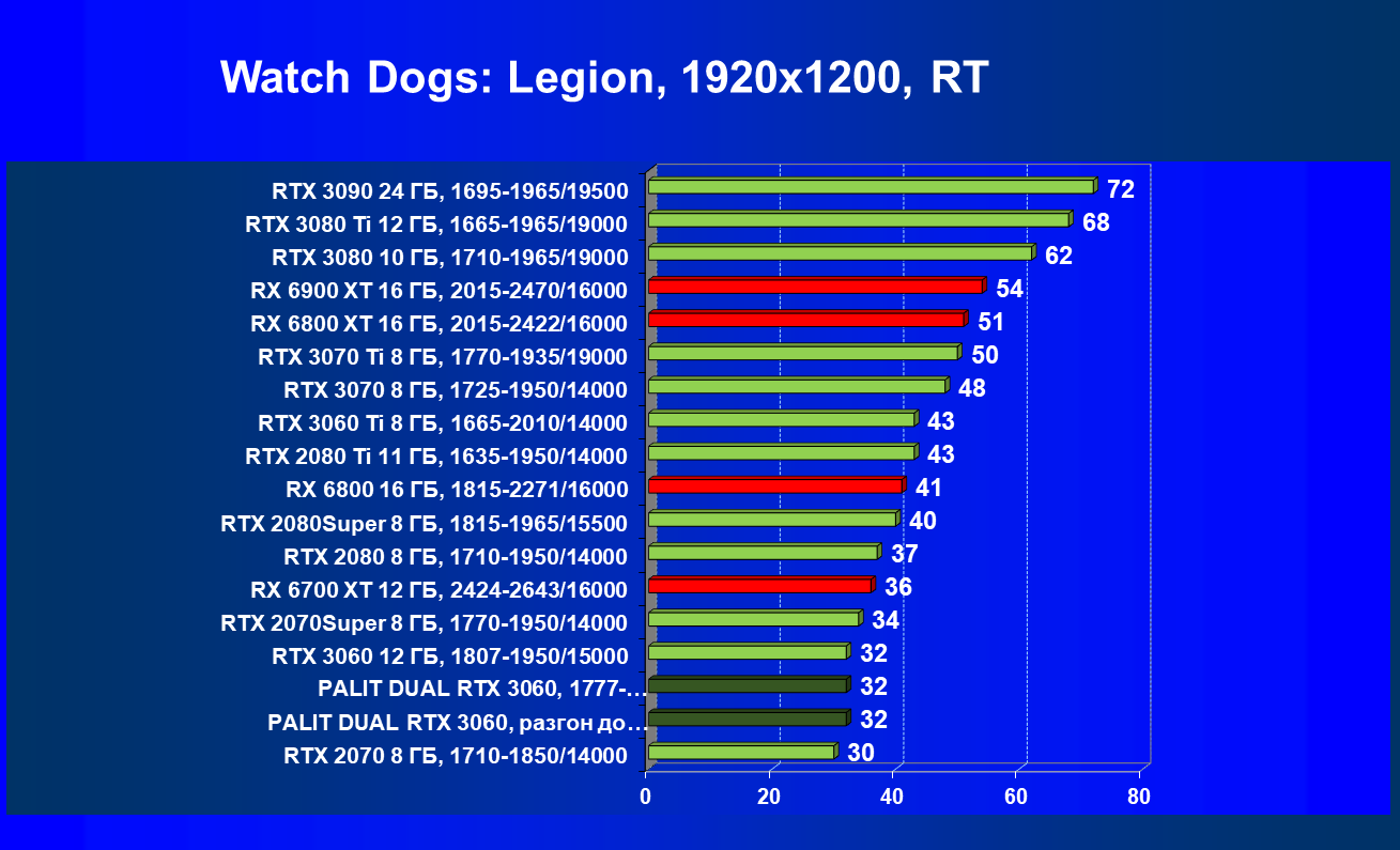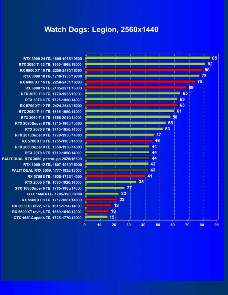 | 19 | RX 6600 XT 8 ГБ, 2359—2664/16000 | 70 | 10 | 68 000 |