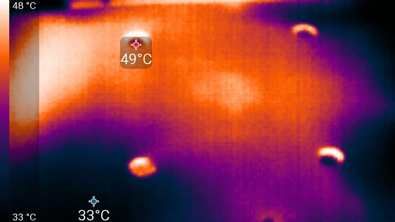 После 2-часового прогона под нагрузкой максимальная температура ядра не превысила 71 градуса, что является хорошим результатом для видеокарт такого уровня. Максимальная мощность была зафиксирована на уровне 148 Вт, а максимальный нагрев наблюдался вокруг ядра (и основным источником нагрева являются преобразователи питания).