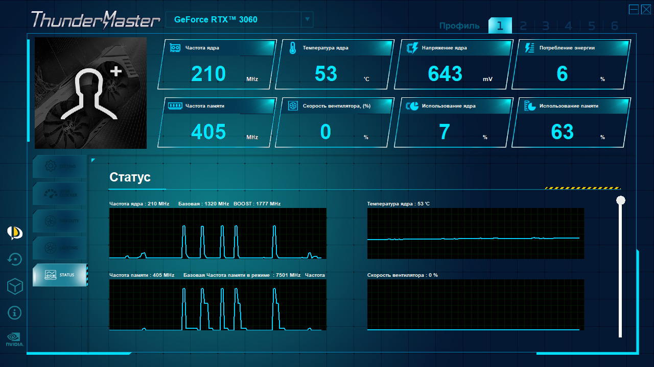 Управление работой карты обеспечивается силами фирменной утилиты Thunder Master v4.8.