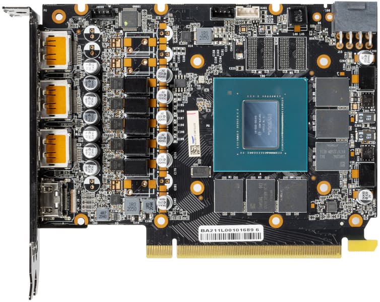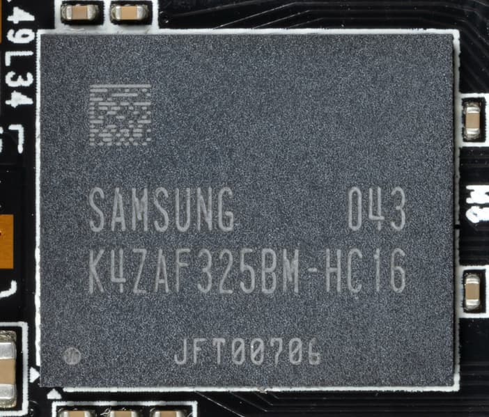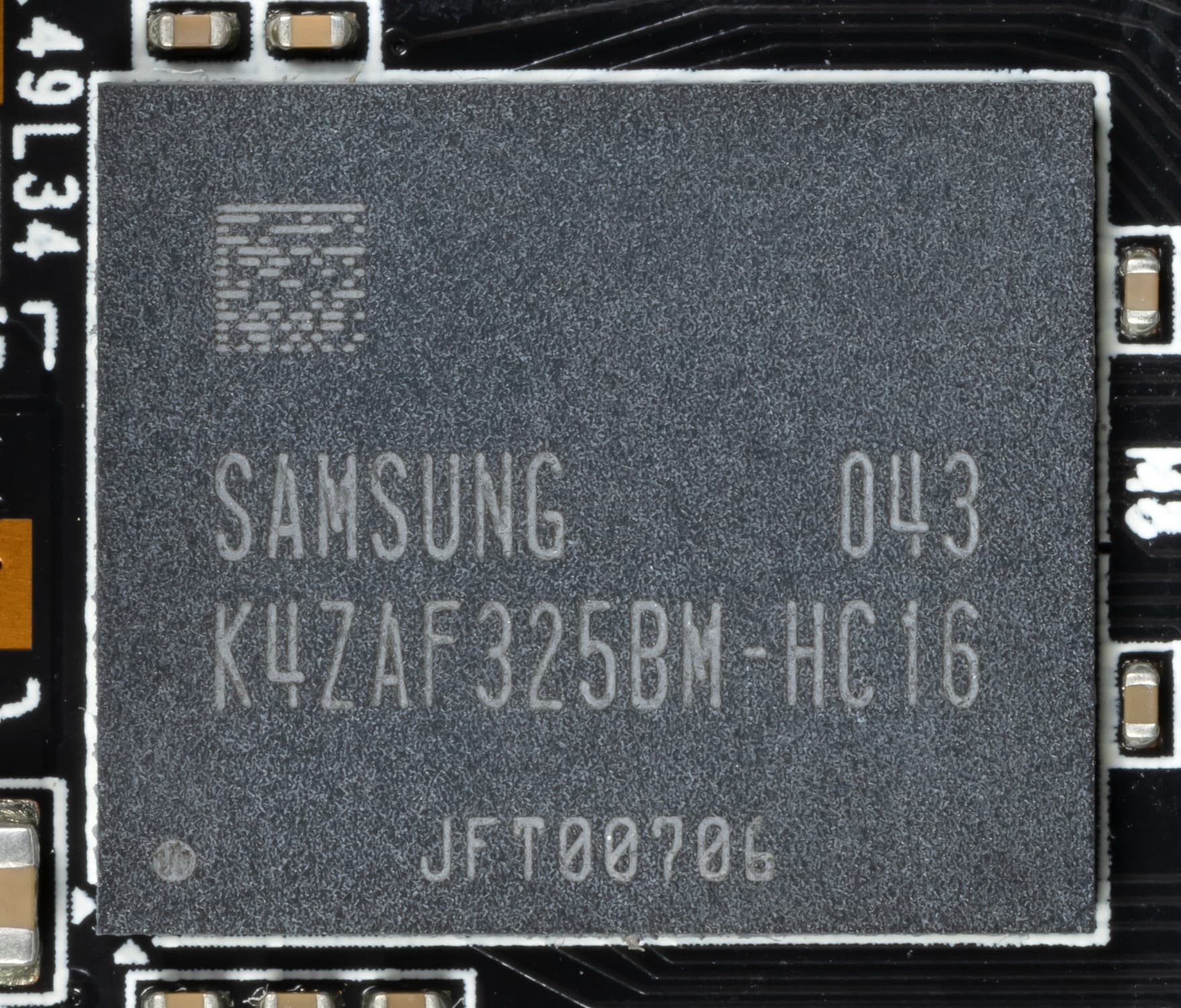 Карта имеет 12 ГБ памяти GDDR6 SDRAM, размещенной в 6 микросхемах по 16 Гбит на лицевой стороне PCB. Микросхемы памяти Samsung (GDDR6, K4ZAF325BM-HC16) рассчитаны на условную номинальную частоту работы в 8000 (16000) МГц.