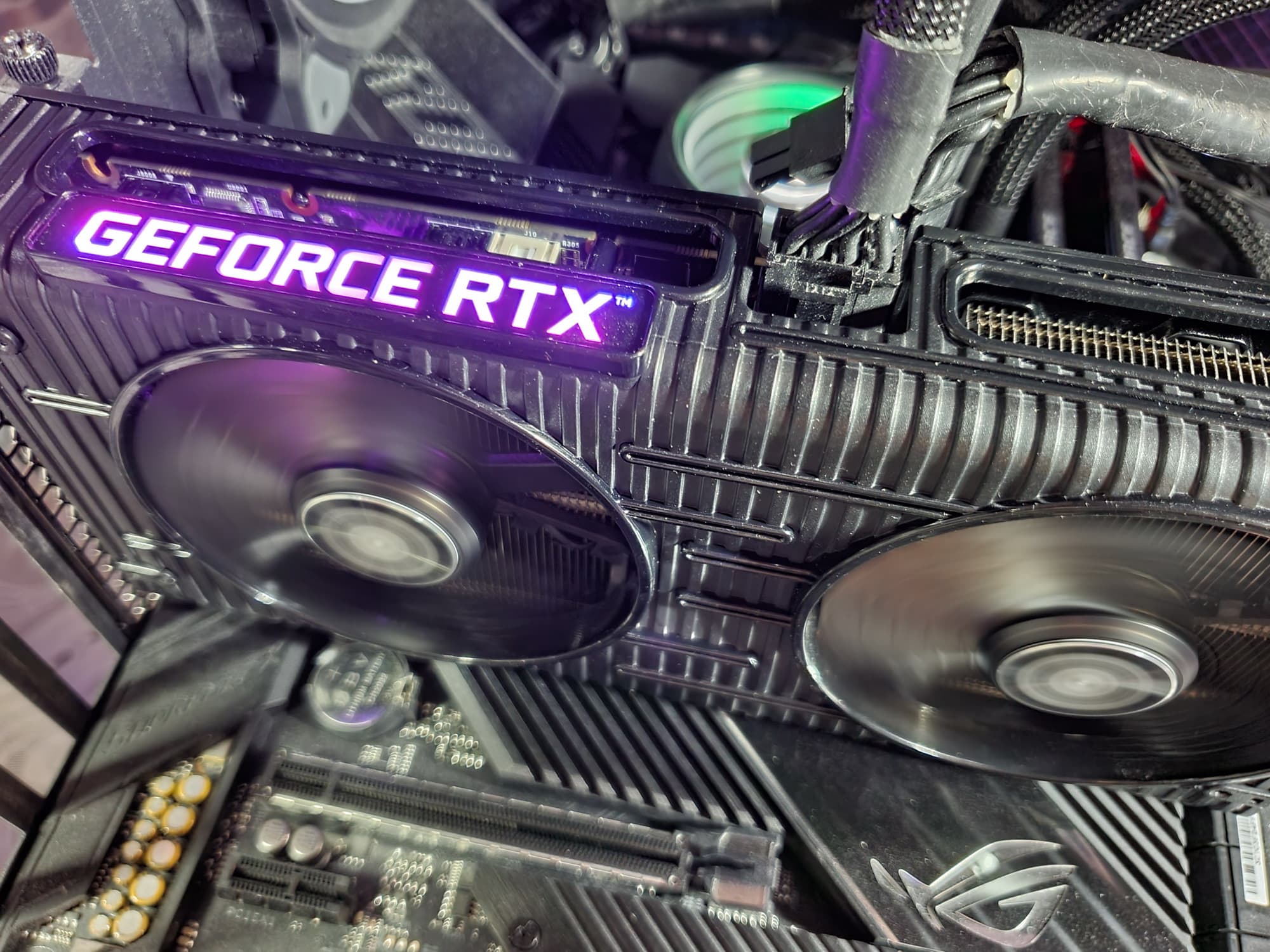 Подсветка у карты довольно простая: светится лишь название серии GeForce RTX на верхнем торце карты.