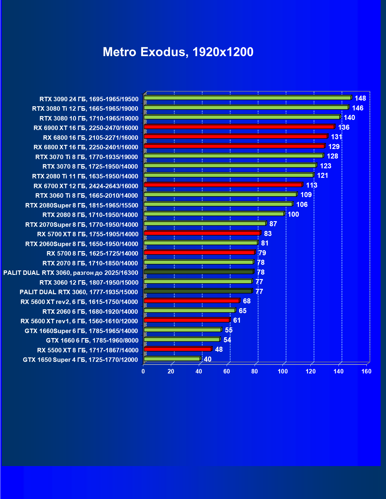 | 19 | RX 5700 XT 8 ГБ, 1755—1905/14000 | 25 | 200 | 79 000 |
