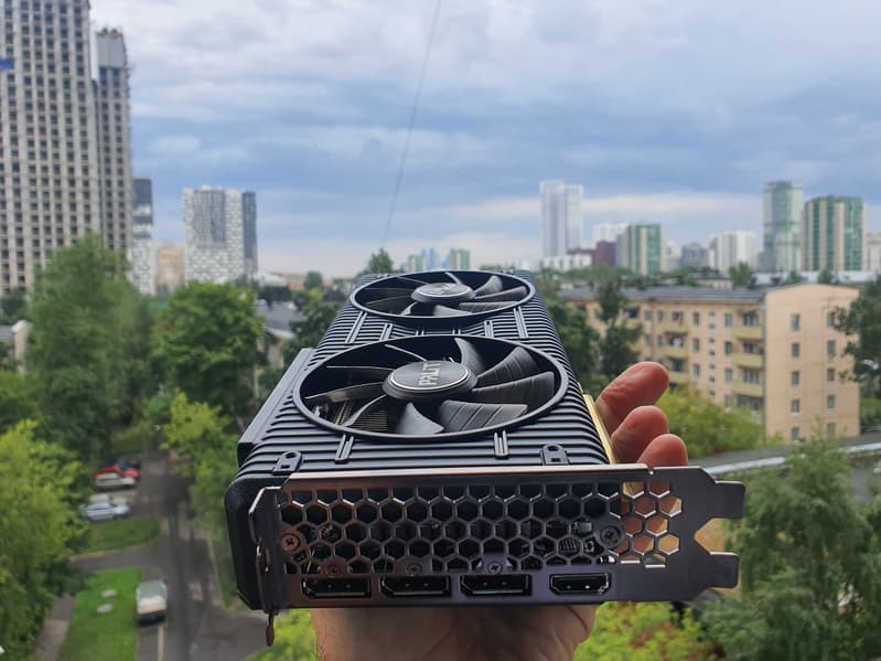 Palit GeForce RTX 3060 Dual (12 ГБ) — достаточно простая видеокарта среднего уровня, подходящая для игры в разрешении Full HD с высокими настройками графики и для тех геймеров, которым не нужна красота карты и ее подсветки. Кулер эффективный и негромкий. Плата сравнительно компактная, так что видеокарта легко уместится в любой корпус.