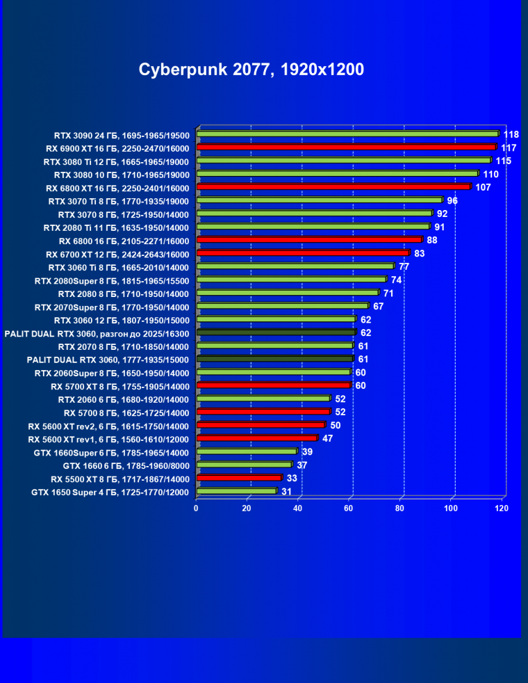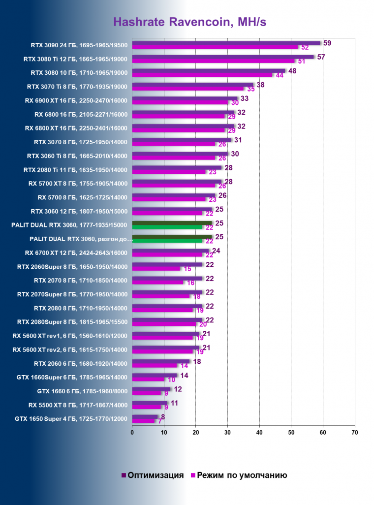 | 03 | Palit Dual RTX 3060, разгон до 2025/16300 | 31 | 210 | 67 000 |