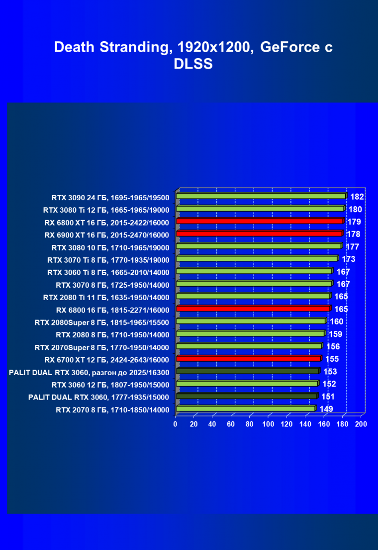 В каких-то играх возможностей GeForce RTX 3060 хватит и для разрешения 2.5К. С учетом того, что ранее для подобных разрешений хватало объема памяти 8 ГБ, нынешние 12 ГБ у GeForce RTX 3060 — ход вынужденный: на картах с шиной в 192 бит можно установить либо 6, либо 12 гигабайт памяти, а 6 гигабайт может не хватить для реализации DLSS 2.0. Вот почему этот середняк получил больше памяти, чем даже топовый GeForce RTX 3080.