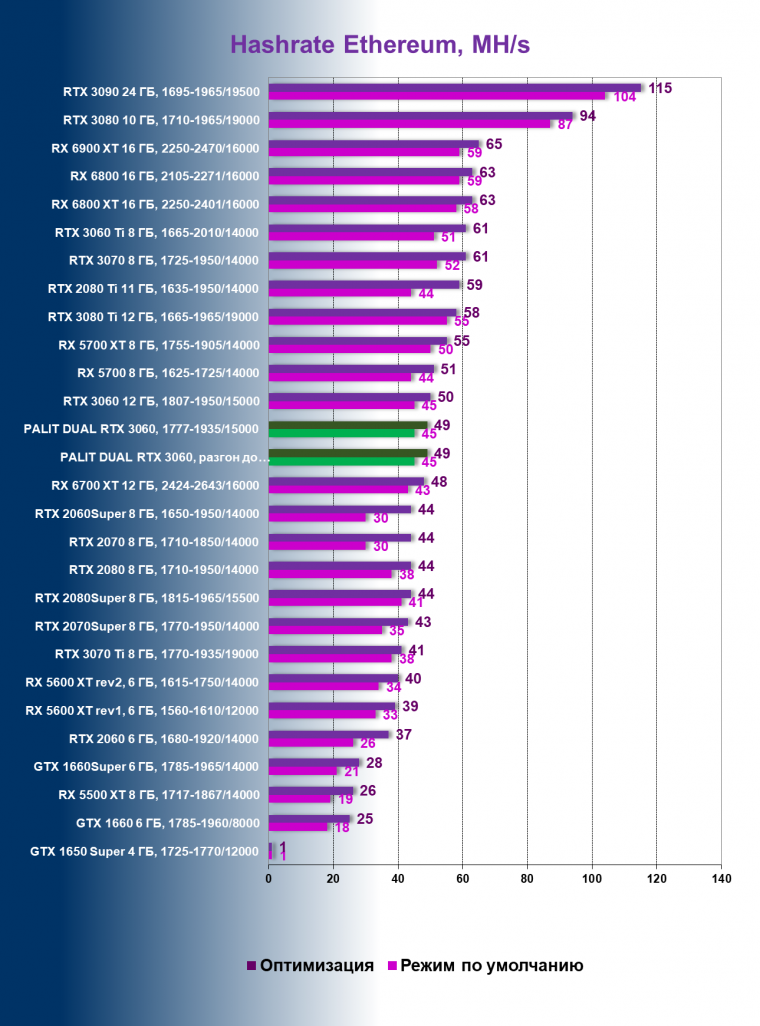 | 18 | Palit Dual RTX 3060, 1777—1935/15000 | 200 | 30 | 67 000 |