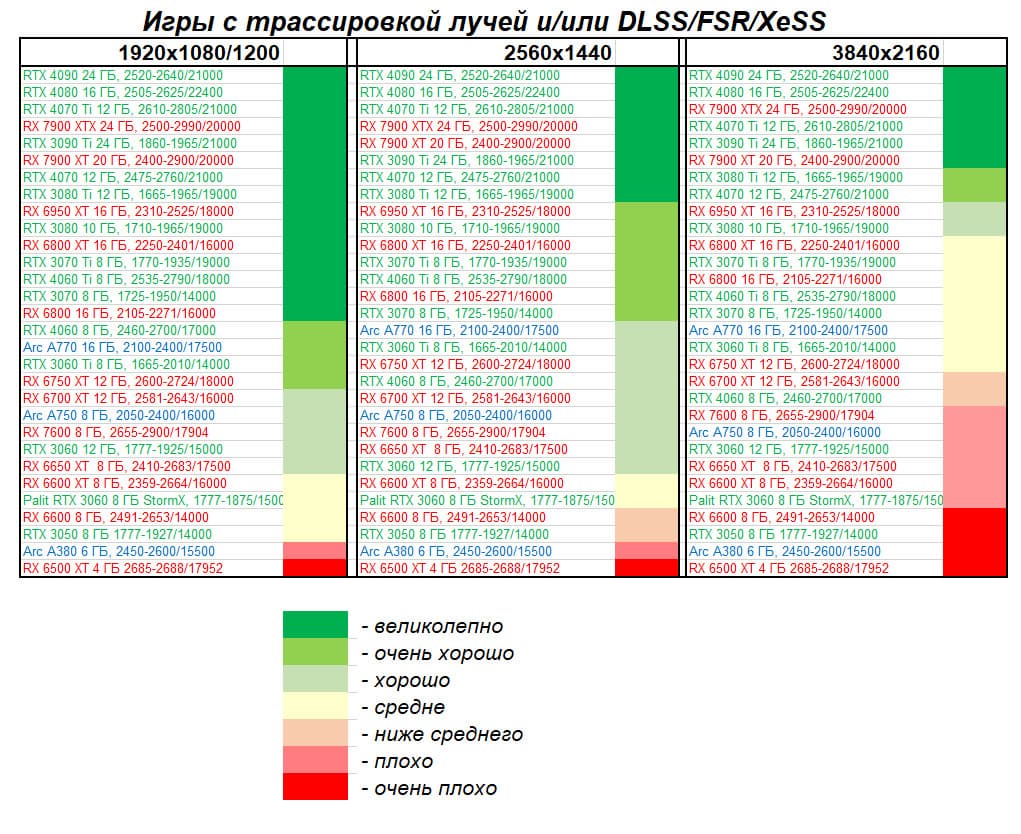 - Вариант рейтинга iXBT.com с включением RT/DLSS/FSR/XeSS