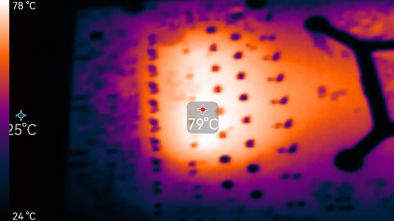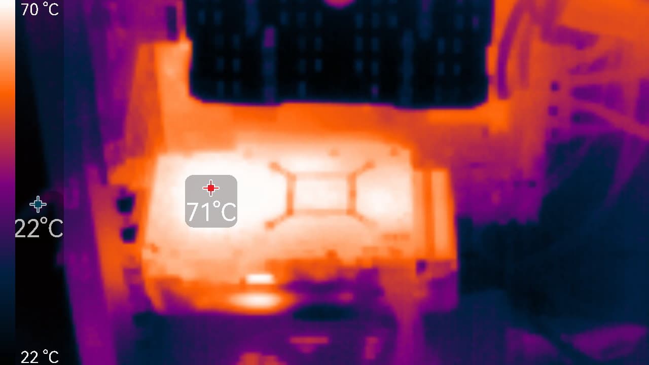 Максимальный нагрев наблюдался в районе преобразователей питания.