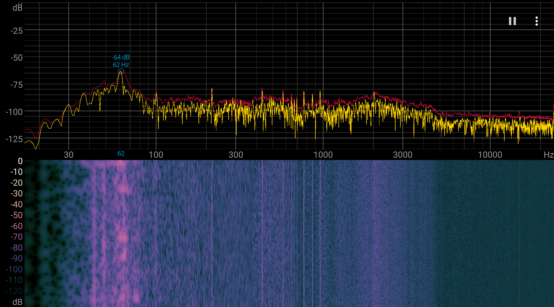Спектрограмма шума достаточно ровная.