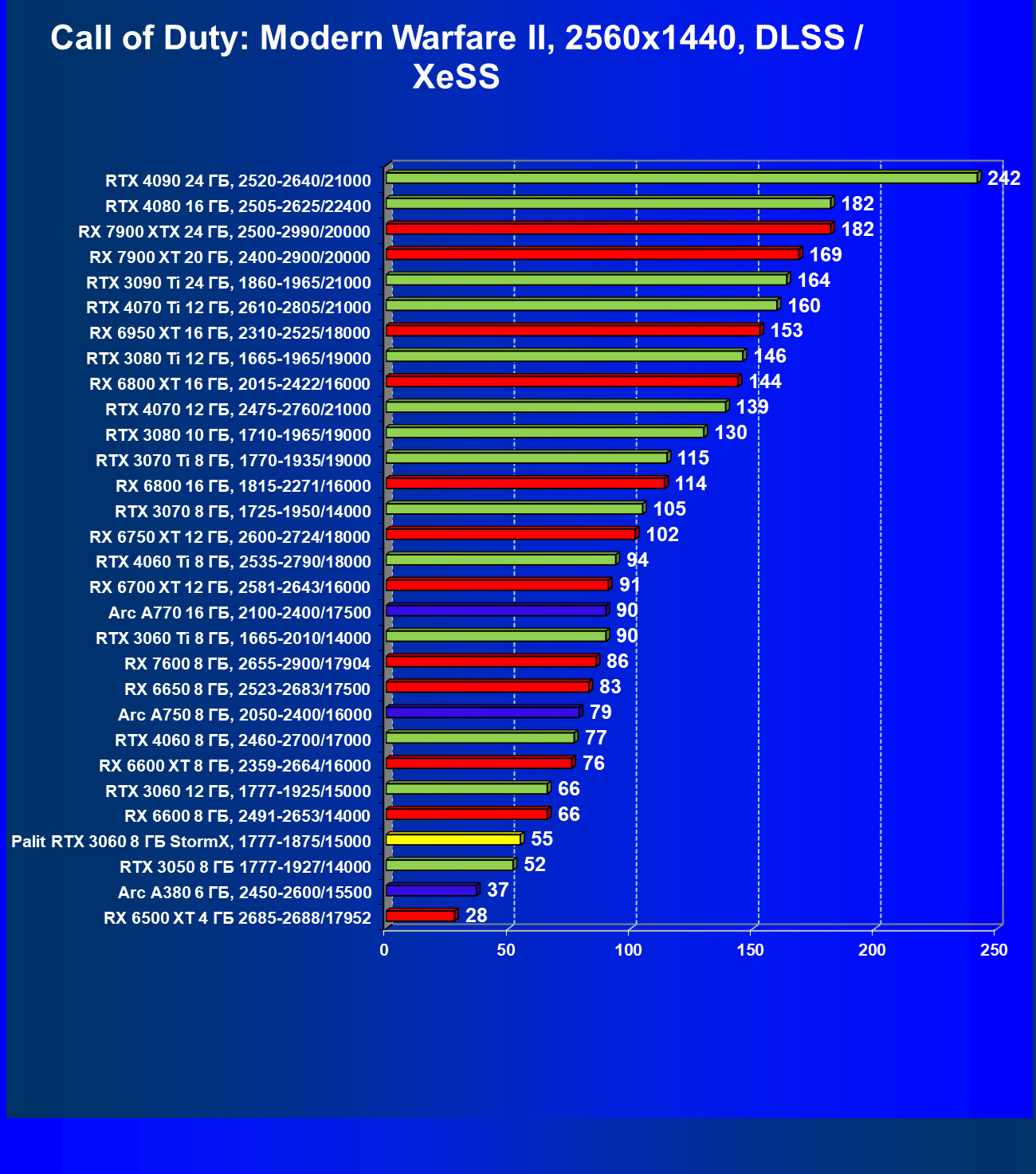 | 24 | RX 6600 XT 8 ГБ, 2359—2664/16000 | 254 | 88 | 29 000 |