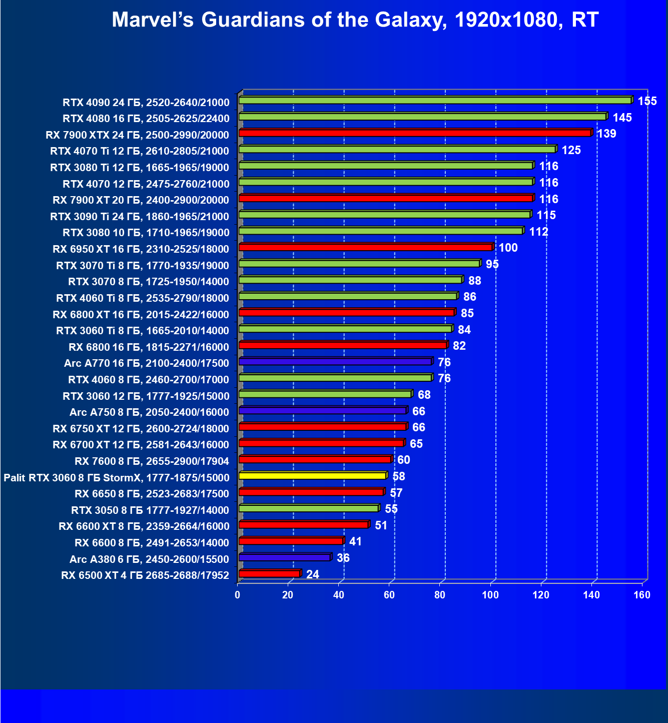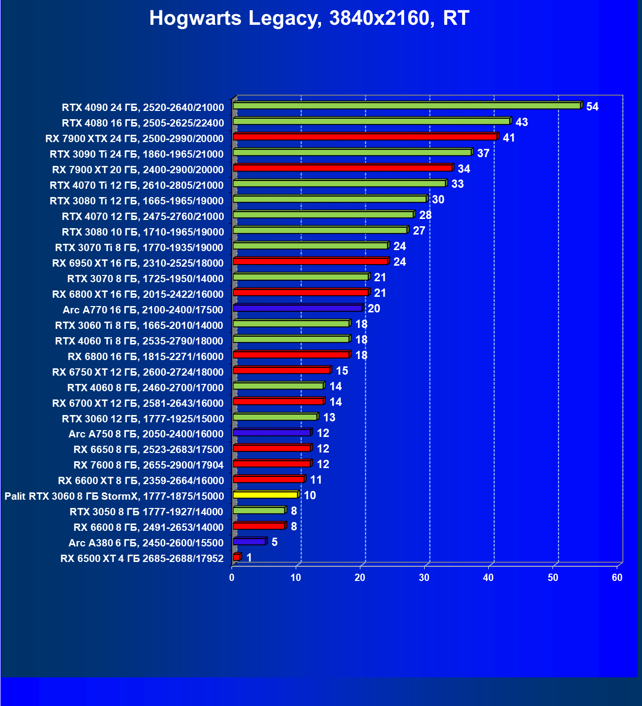| 06 | RX 6600 XT 8 ГБ, 2359—2664/16000 | 88 | 254 | 29 000 |